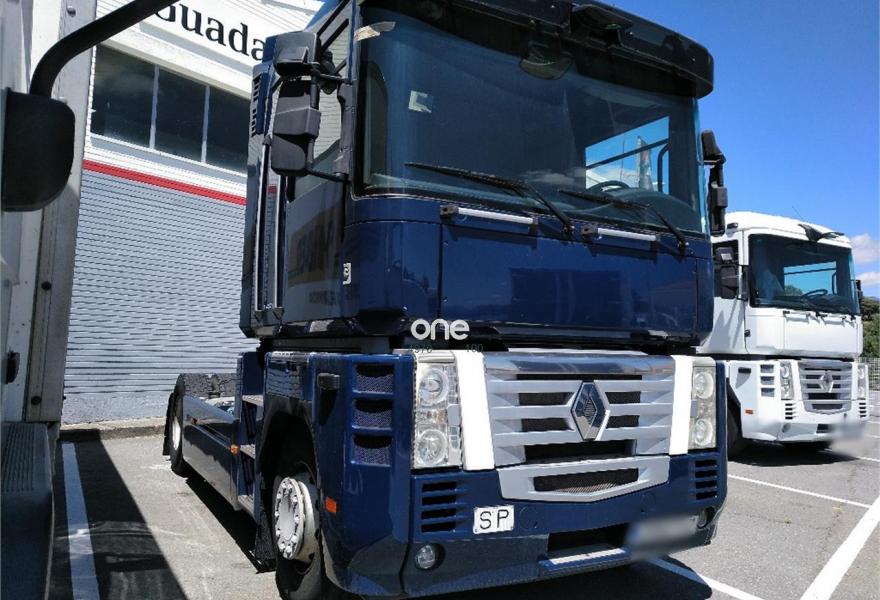 RENAULT MAGNUM 460/18, año 2007, 560000 kilómetros, precio 17000€. VEHICULO EQUIPADO CON A/A CALEFACCION AUTONOMA NEVERA EMISORA CARENADOS LATERALES DEPOSITO DE GASOIL DE 715L, CAJA DE CAMBIOS MANUAL ZF 16, MOTOR 13L GRUPO 13X37, SUSPENSION NEUMATICA TRASERA, AVISADOR DE MARCHA ATRAS, TRAMPILLA TECHO ELECTICA, ASIENTO CONDUCTOR NEUMATICO, PASAJERO CONFORT,NEUMATICOS 315/80 R22.5 AL 80% DE VIDA.MUY BUEN ESTADO SIEMPRE EN TALLER OFICIAL. .