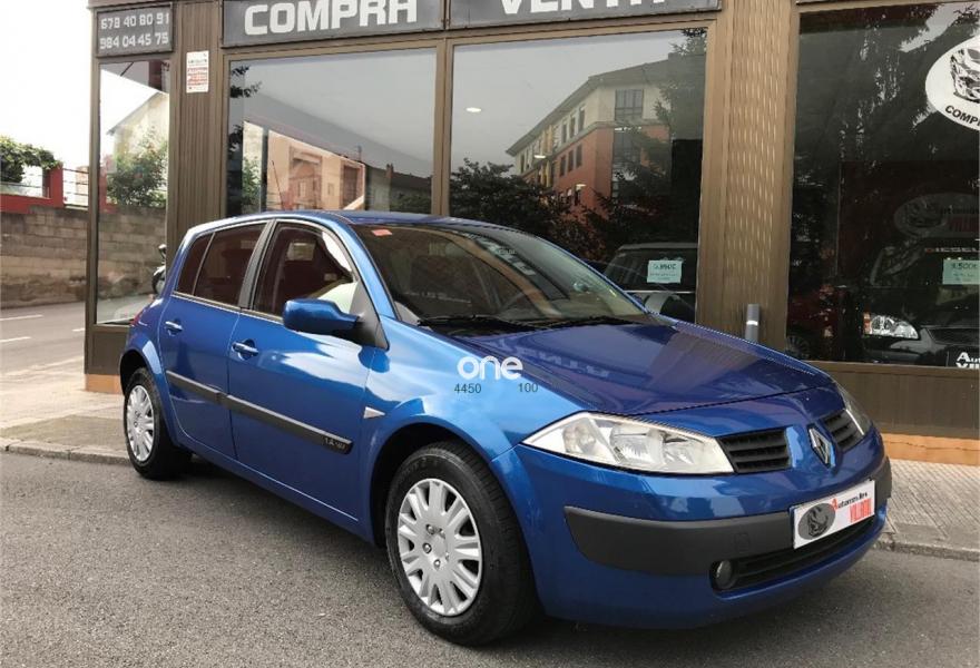RENAULT Megane, Gasolina, año 2004, 140000 kilómetros, color Azul metalizado, precio 2999€. aire acondicionado, cierre centralizado con tarjeta ( 2 tarjetas), arranque por botón, 4 elevalunas eléctricos, dirección asistida,, espejos eléctricos, radio cd con mandos en el volante,etc. Se entrega con la ITV recién pasada por un año completo, el mantenimiento hecho incluida la correa de distribución y limpieza integral de tapicería. Vehículo en gestión de venta. Precio no incluye el cambio de nombre (+150€), ni la garantía opcional de un año (+500€).