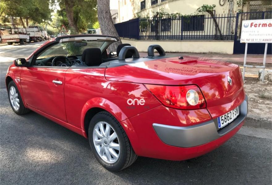 RENAULT Megane, Gasolina, año 2007, 190000 kilómetros, color Rojo , precio 3800€. AUTOMÓVILES TEO GARCÍA, se vende megane cabrio 1.6 Dynamique 110cv, control de velocidad, climatizador, radio Cd con pantalla táctil con usb, ordenador de abordo, sensores de luces y lluvia, abs, esp,elevalunas eléctricos, cierre centralizado, llantas de aleación neumáticos nuevos, itv recién pasada, con 12 meses de garantía, estamos en polígono campollano avenida primera número 35.