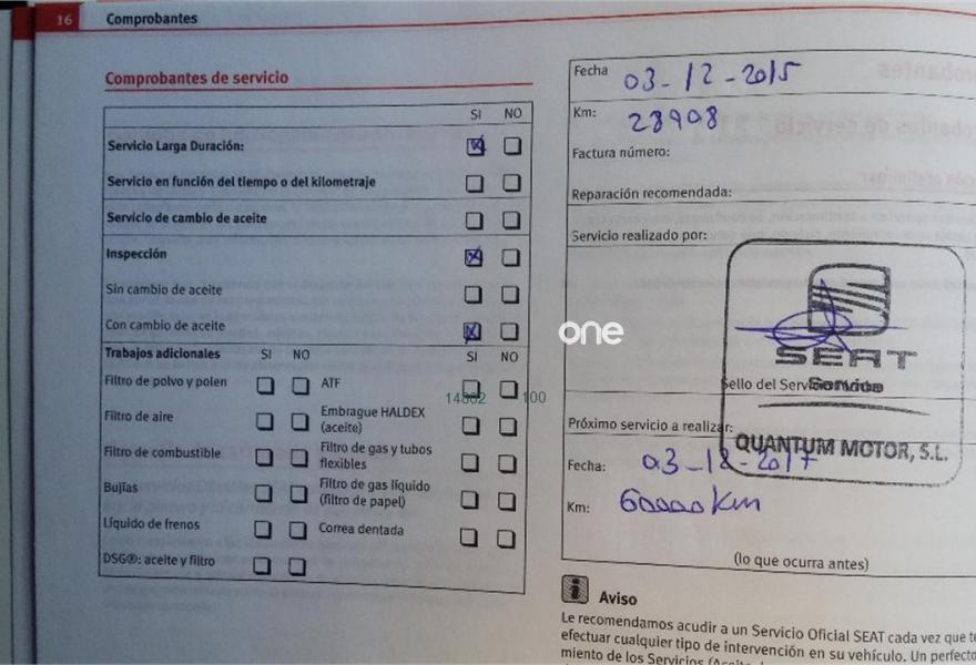 REVISIONES PASADAS EN SERVICIO OFICIAL SEAT. ÚLTIMA REVISIÓN RECIÉN PASADA (60.000 KMS).
