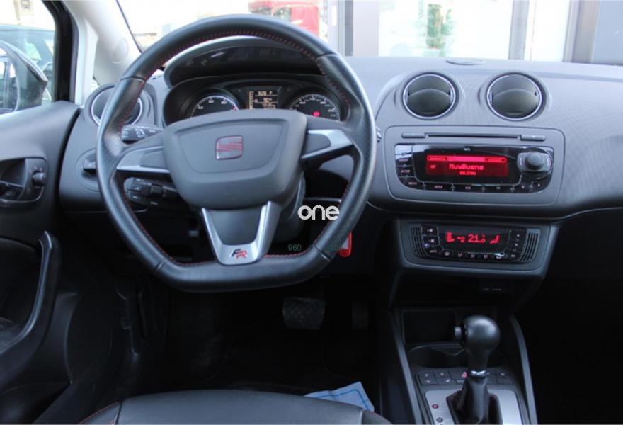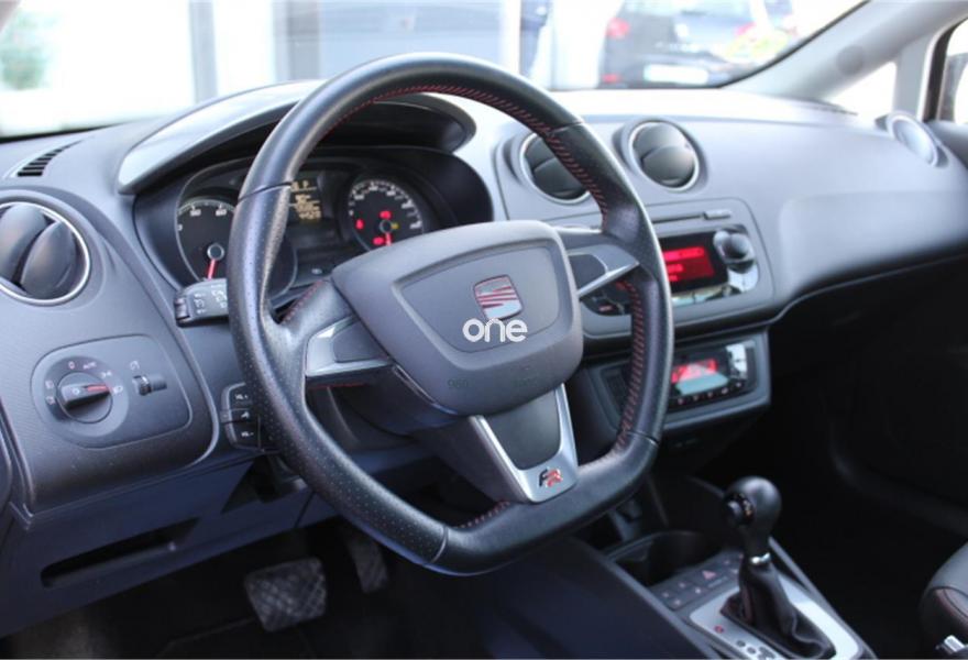 SEAT Ibiza, Gasolina, año 2013, 73000 kilómetros, color Negro metalizado, precio 12800€. Paquete deportivo FR, cambio automático, faros de xenón con luz diurna Led, climatizador digital automático, techo solar, regulador de velocidad, tapicería de cuero total negro, radio CD con entrada USB, asientos delanteros calefactables, etc..
