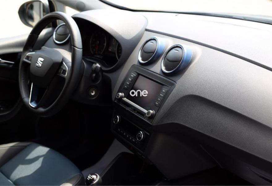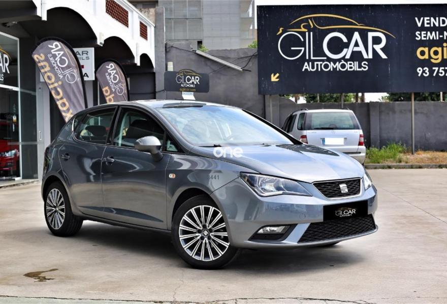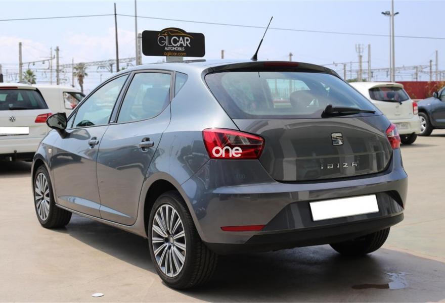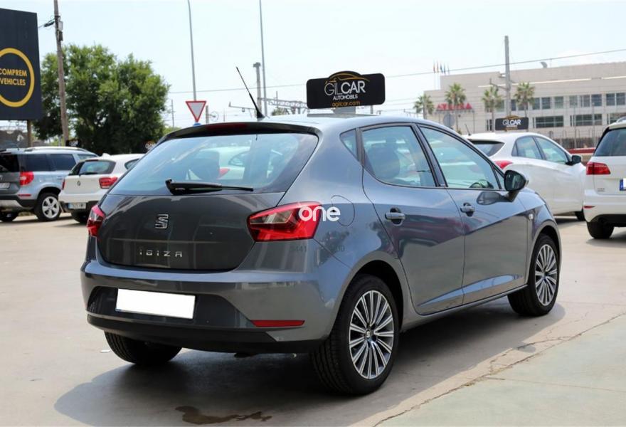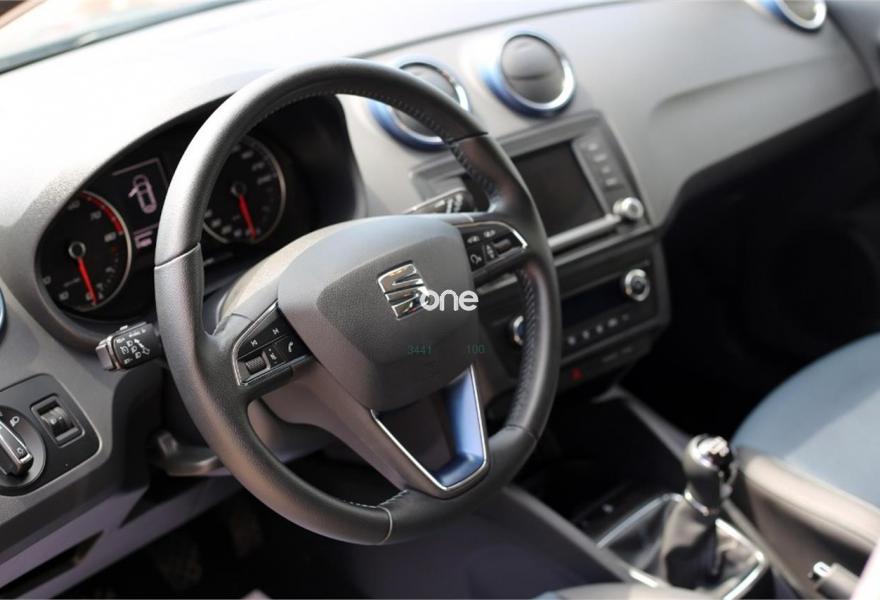 SEAT Ibiza, Gasolina, año 2015, 31000 kilómetros, color Gris / Plata , precio 10500€. Dispone de Pantalla Táctil 5" + Bluetooth + USB + Volante multifuncional + Control de velocidad + Asientos deportivos de piel mixta + Climatizador + Start&Stop + Sistema Isofix + Faros Antiniebla + ABS + ESP + Llantas aleación 16'.