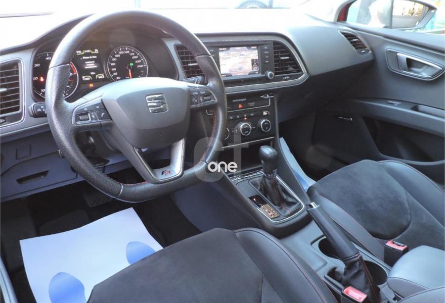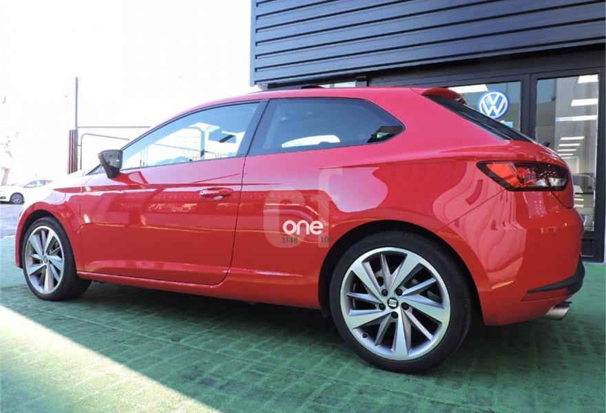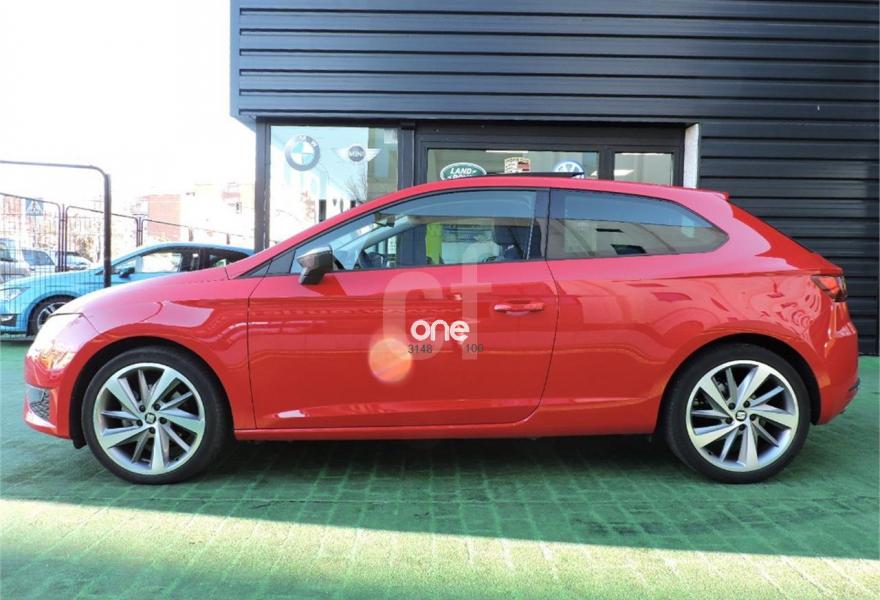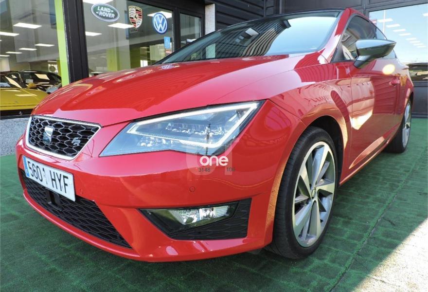 SEAT Leon, Diesel, año 2014, 51000 kilómetros, color Rojo metalizado, precio 16490€. Rojo emoción (suave),Negro (tela),Convenience Pack: Sensor de luz (con función Coming and Leaving Home) + Sensor de lluvia + Espejo interior electrocromático,Techo eléctrico,SEAT Full LED + luces diurnas LED + LED traseros (sin función cornering) - En Reference sólo disponible para Flotas,Control de velocidad crucero adaptativo con radar de próximidad (IncluyeWAS) (No disponible para versiones Ecomotive),Rueda de repuesto de 18" minimizada,Titanium Pack:Llantas de aleación 18" Performance + retrovisores titanium,Sesonres de aparcamiento delanteros y traseros + OPS (visión esquemática del coche y obstáculos),Alcantara con asientos deportivos,Paquete de iluminación LED interior. SEAT Leon SC 2.0 TDI 150cv StSp FR 3p.