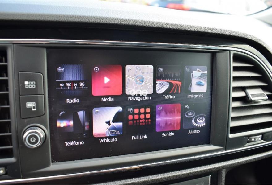 >SEAT Navi System + cartografia Pantalla táctil de 8", Sonidos formato MP3 y WMA, 2 tomas USB, 2 tarjetas SD, Toma Aux-in, 8 altavoces y reconocimiento de voz.