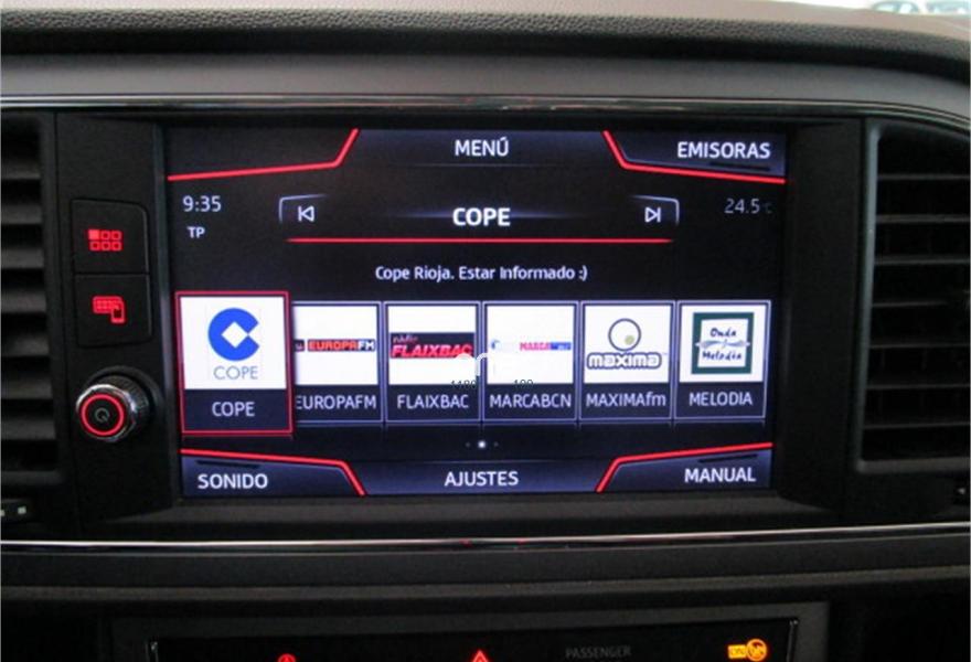 SEAT Leon, Diesel, año 2017, 15696 kilómetros, color Rojo metalizado, precio 18200€. Full Link,Convenience Pack: Sensor de luz (con función Coming and Leaving Home) + Sensor de lluvia + Espejo interior electrocromático,Paquete iluminación LED interior incluye: Luces delanteras de lectura LED + Luces LED en cortinilla parasol + Iluminación LED en zona de pies +Luces LED maletero,Llantas de aleación 17" Dynamic 30/4 Machined,Rojo Desire (metalizado),Rueda de repuesto de 16" minimizada,Front Assist (Freno de emergencia en ciudad),Sistema de apertura y arranque sin llave Kessy con función "MyBeat" -sin SAFE-,Radio Media System Plus - Pantalla táctil a color de 8"; Formatos MP3/WMA; Conectividad 2xUSB/Tarjeta SD/CD/Aux-in, Bluetooth 8 altavoces y Reconocimiento de voz,Asientos deportivos en Alcantara negra + interior en negro + ajuste lumbar y en altura + Cajón bajo asiento pasajero + Interior Design Pack (solo en Style) + Reposabrazos trasero.