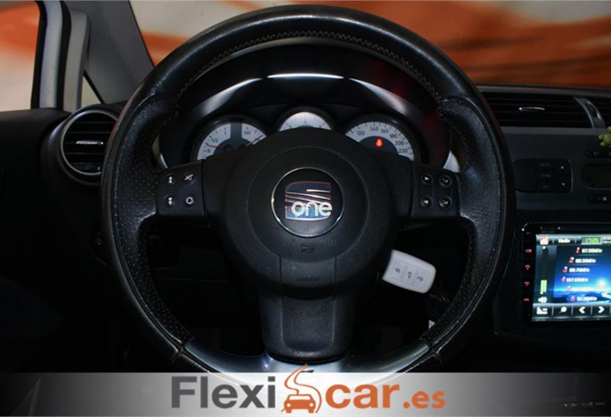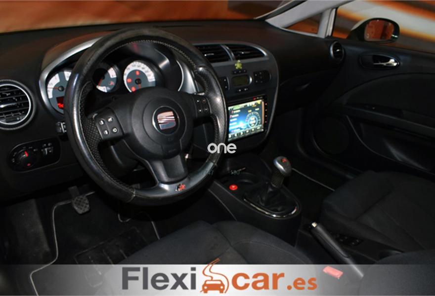 SEAT Leon, Diesel, año 2008, 169990 kilómetros, color Blanco , precio 9490€. Negro Metálico (tela),Conexión USB bajo asiento pasajero,Navegador dinámico pantalla táctil color con sistema Bluetooth,Instalación teléfono Bluetooth + MP3,Eyectores calefactados + lavafaros + asientos calefactados,Sensor de lluvia y espejo interior antideslumbramiento automático,Techo eléctrico de cristal con antipinzamiento,Cristales oscuros,Llantas de aleación 7Jx18 Andrómeda con neumáticos 225/40 R18,Blanco Candy (suave),Desconexión airbag pasajero,Airbags laterales plazas traseras (torax).