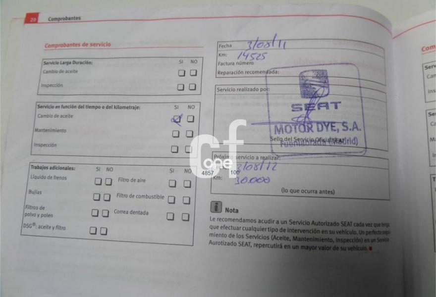 SEAT Leon, Diesel, año 2011, 78000 kilómetros, color Blanco metalizado, precio 10800€. Paquete Connection,Blanco Candy (suave),Pintura metalizada,Pintura color Blanco. IVA, Transferencia, Garantía Completa 1 año Incluida en el precio. Libro de mantenimiento oficial sellado. Seat Leon 1.6 TDI 105cv Eecomotive Reference. Matriculación Enero 2011. Kilómetros certificados por escrito. Se entrega el coche pintado entero con la revisión completa aceite y filtros cambiados. Climatizador digital bizona, Control de velocidad, Sensores de aparcamiento, Volante multifunción, Telefono Bluetooth, USB, Sensor de luces, ESP, Llantas de aleación, Ordenador de abordo, Elevalunas eléctricos, Cierre centralizado. SFMOTOR.ES - FACEBOOK.COM/SFMOTORTOLEDO - c/ Rio Jarama, 101 (Frente a ITV Antigua) - Toledo ABRIMOS TODOS LOS DIAS DEL AÑO, DOMINGOS Y FESTIVOS MAÑANA Y TARDE (09.00 a 14.00 y de 16.00 a 20.00h).