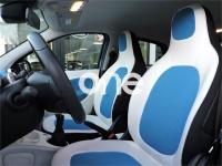 - Asientos con tapicería de tela/cuero en color azul/blanco