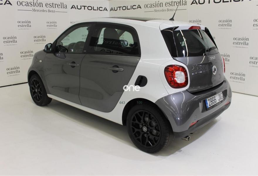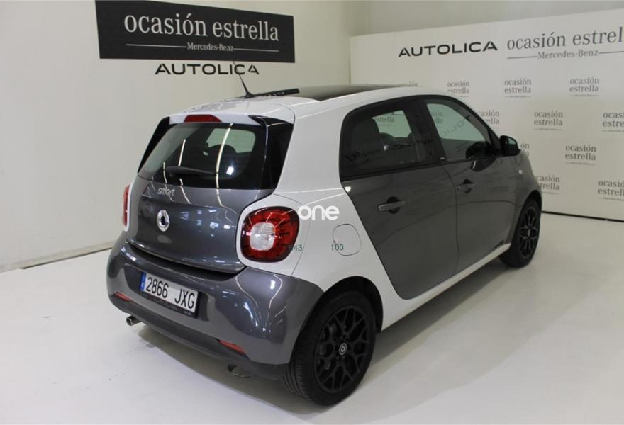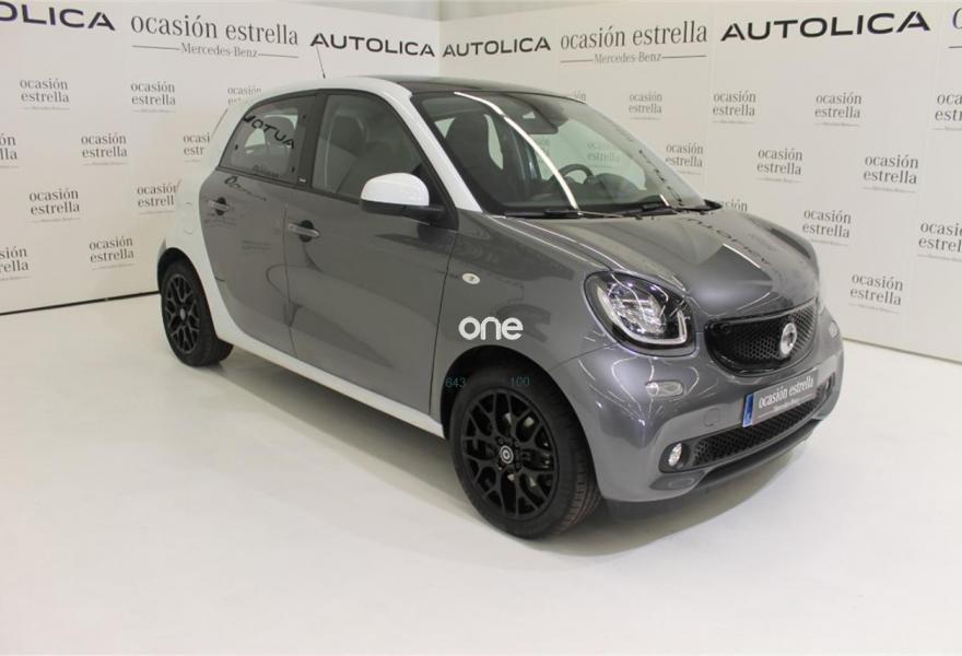 SMART forfour, Gasolina, año 2017, 16679 kilómetros, color Gris / Plata metalizado, precio 14900€. Cambio automático de doble embrague y 6 velocidades,Paquete deportivo,Paquete LED & Sensor,Techo panorámico de cristal con parasol,Depósito de combustible de 35 litros,Bodypanels en gris grafito metalizado,Reloj y cuentarrevoluciones. Mercedes-Benz Certified. Vehículos seminuevos de Mercedes Benz con kilometraje certificado, con menos de 150.000 kms y hasta 6 años de antigüedad, revisados cuidadosamente para que puedas disfrutar de tu vehículo como si lo fueras a estrenar.