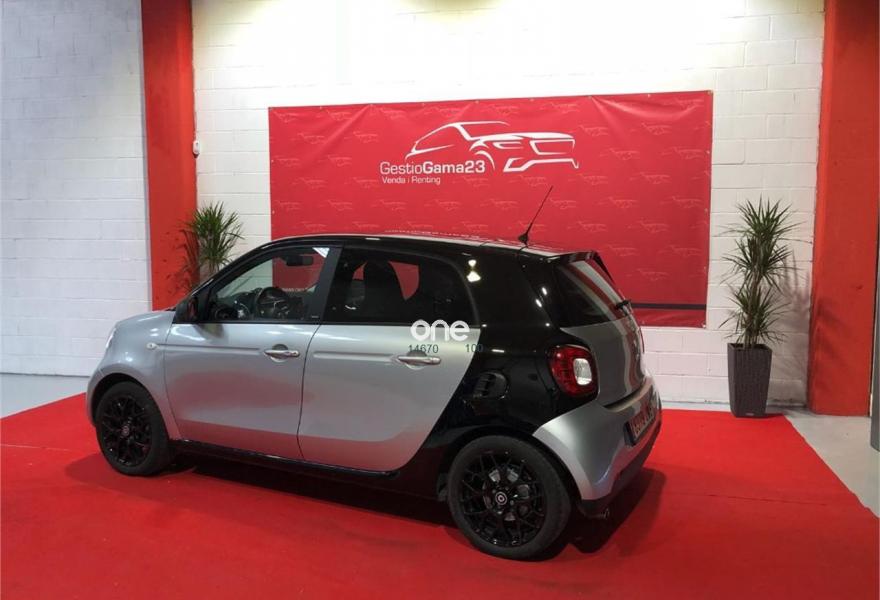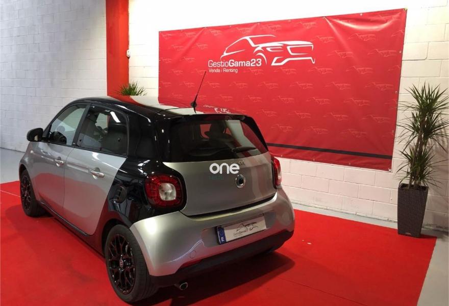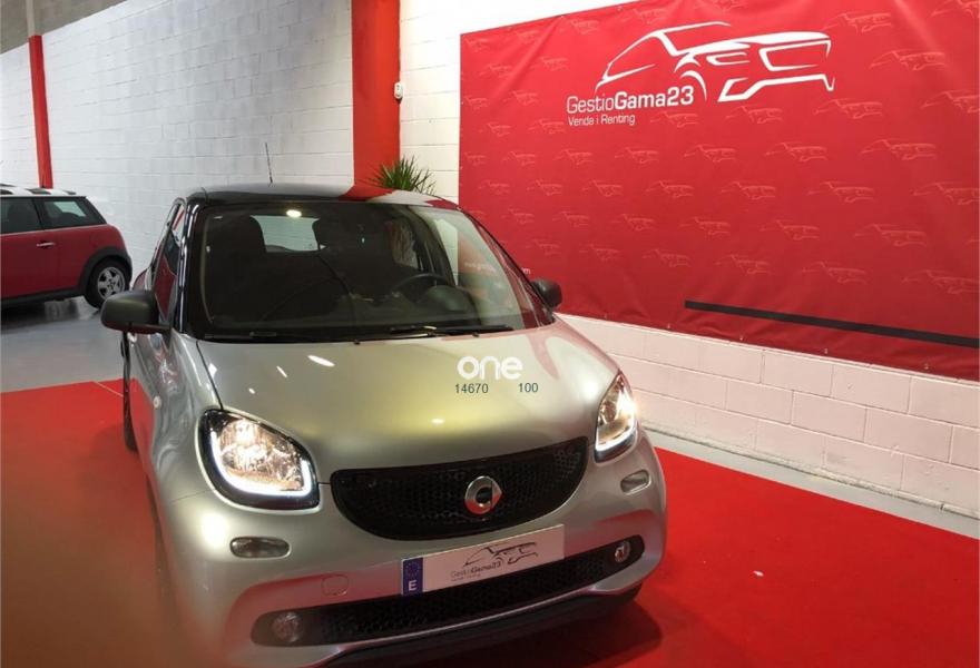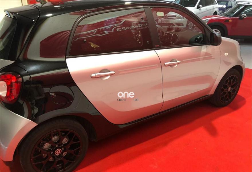 SMART forfour, Gasolina, año 2017, 27000 kilómetros, color Gris / Plata (negro) metalizado, precio 10500€. Radio digital (DAB),Cambio automático de doble embrague y 6 velocidades,Faros antiniebla,Parrilla del radiador en plata metalizado,Tapizado de tela negro/blanco,Llantas de aleación de 5 radios dobles y 15" en color negro y plata, con neumático sdelante (165/65 R 15), detrás (185/60 R 15),Retrovisores eléctricos y calefactados,Levas de cambio en volante,Reloj y cuentarrevoluciones. Un solo propietario, nuevo, techo panorámico, en perfecto estado, con garantía de fábrica..
