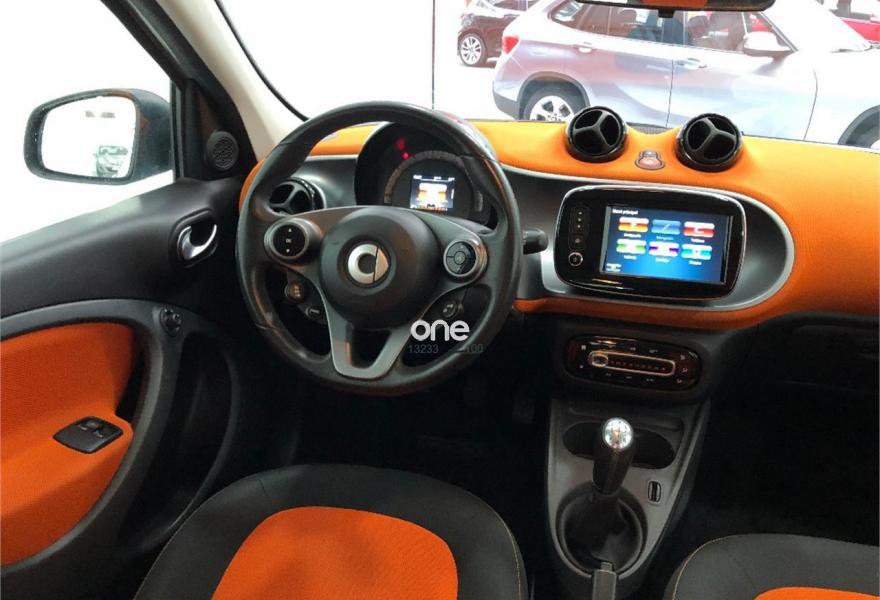 SMART forfour, Gasolina, año 2016, 35711 kilómetros, color Gris / Plata , precio 7500€. Paquete Premium,Alfombrillas de velours color negro,Apoyabrazos central delantero abatible - Available from March 2015,Paquete City,Radio digital (DAB),Sistema de sonido JBL,Faros antiniebla,Guardabarros con superficie estructurada con logo,Iluminación de ambiente,Paquete Cool & Media,Paquete LED & Sensor,Parrilla del radiador en plata metalizado,Parrilla del radiador gris grafito (metalizado),Sistema antirrobo,Tapizado de tela negro/naranja,Techo panorámico de cristal con parasol,Triángulo de emergencia,Depósito de combustible de 35 litros,Bodypanels en gris grafito metalizado,Llantas de aleación de 5 radios dobles y 16" en color negro y plata, con neumáticos delante (185/50 R 16) ,detrás (205/45 R 16),Retrovisores eléctricos y calefactados,Tridion en plata metalizada,Reloj y cuentarrevoluciones. MEJOR CUOTA MENSUAL: 100€/mes