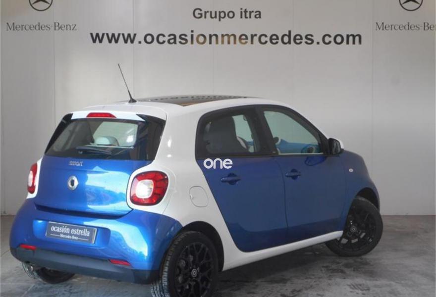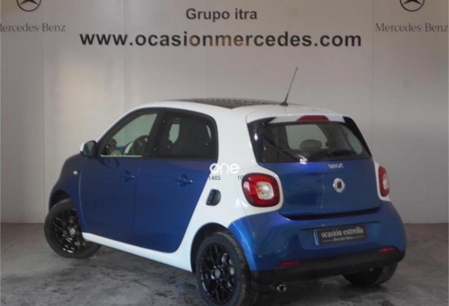 SMART forfour, Gasolina, año 2016, 13970 kilómetros, color Azul (TRIDION EN BLANCO) metalizado, precio 9900€. Cambio automático de doble embrague y 6 velocidades,Paquete de confort,Paquete LED & Sensor,Parrilla del radiador en blanco,Tapizado en símil de cuero/tela blanco/azul,Depósito de combustible de 35 litros,Azul medianoche metalizado,Tridion en blanco,Reloj y cuentarrevoluciones. LINEA PROXY.