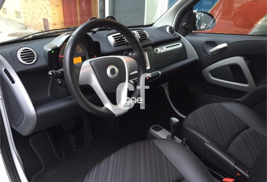 SMART fortwo, Gasolina, año 2012, 24000 kilómetros, color Blanco , precio 9500€. único propietario, libro de revisiones en servicio oficial, WHITE SERIES, Edición limitada 1000cc 84cv turbo (200 unidades) llantas de aleación y suspensión Brabus. Automático y secuencial con levas en volante, dirección asistida eléctrica, elevalunas eléctrico, techo panorámico, reloj y cuentarrevoluciones. Luces diurnas. Aire acondicionado, tapicería mixta tela/cuero en negro. Radio CD con pantalla táctil y GPS, entrada USB y Jack. Revisado, transferido y con 12 meses de garantia.