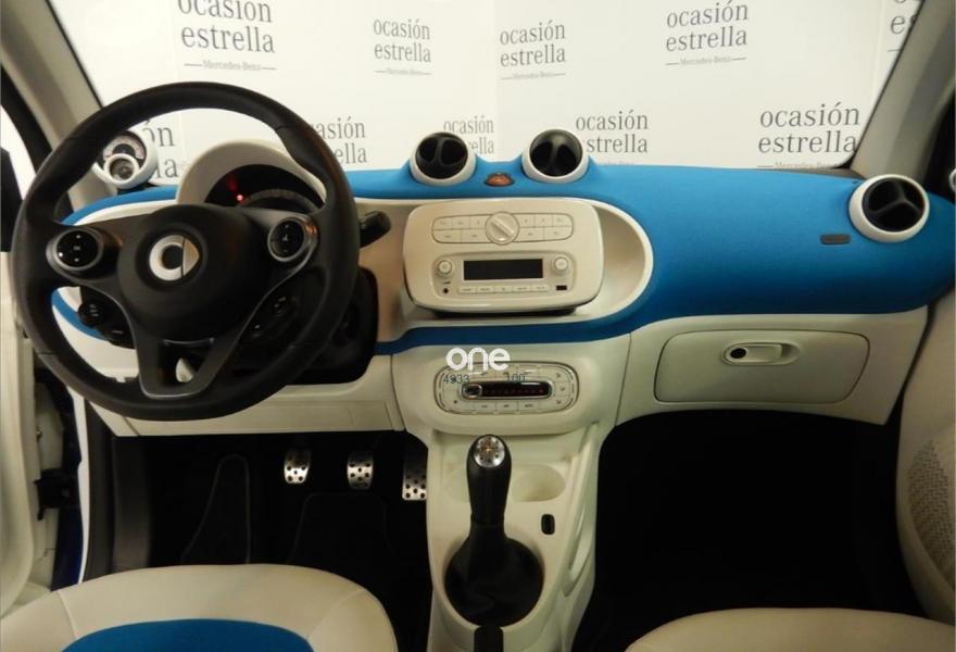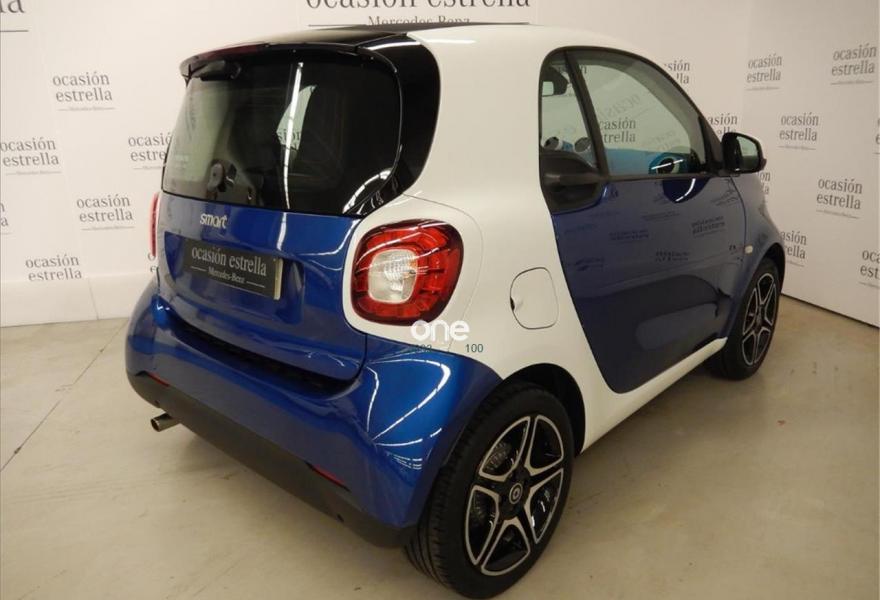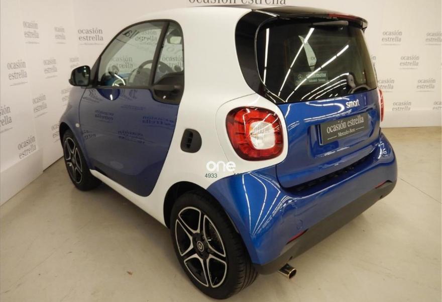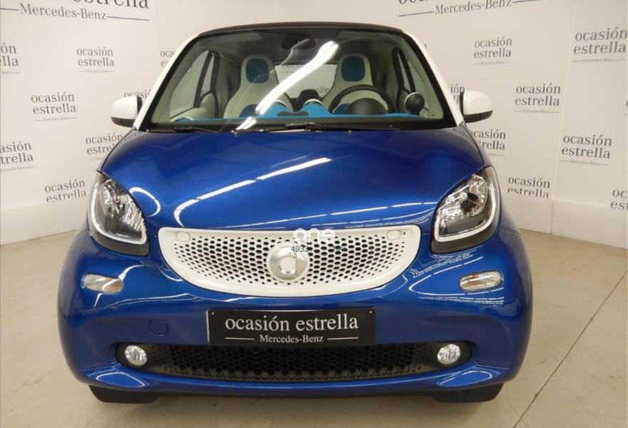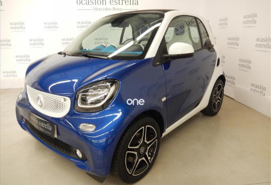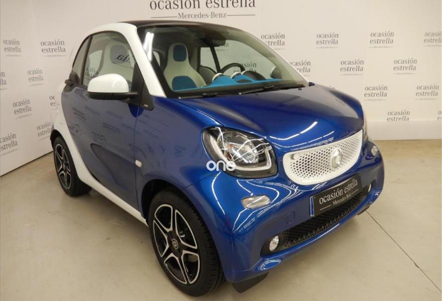 SMART fortwo, Gasolina, año 2017, 13560 kilómetros, color Azul metalizado, precio 11800€. Sistema de sonido JBL,Paquete de confort,Paquete LED & Sensor,Parrilla del radiador en blanco,Bodypanels en azul medianoche metalizado,Llantas de aleación de 5 radios dobles y 16" en color negro y plata, con neumáticos delante (185/50 R 16) ,detrás (205/45 R 16),Retrovisores eléctricos y calefactados,Tridion en blanco,Reloj y cuentarrevoluciones. Vehículo de gerencia completamente equipado, en perfecto estado y revisado por nuestro concesionario MERCEDES-BENZ.