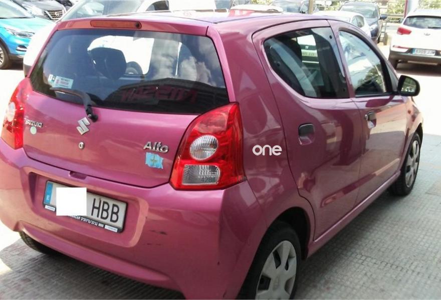 SUZUKI Alto, Gasolina, año 2010, 134000 kilómetros, color Rosa metalizado, precio 2850€. Matriculado en diciembre del 2010.Modelo 2011.Funciona perfecto de motor sin ningún fallo mecánico. Recién revisado.Interior muy bien conservado.De pintura detalles de aparcar.Con aire acondicionado.Consumo medio de 5 litros a los 100km.Se entrega revisado y con una limpieza a fondo.Precio sujeto a financiación. Adaptamos la cuota a sus necesidades sólo con la nómina y el DNI..