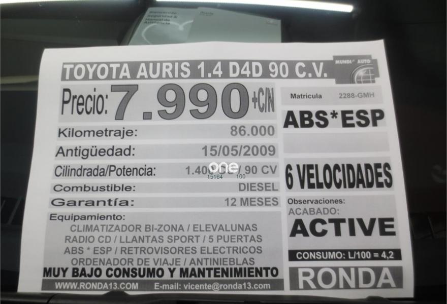 TOYOTA Auris, Diesel, año 2009, 86000 kilómetros, color Negro metalizado, precio 6990€. Negro Mica (metalizado). TOYOTA AURIS D4D TURBO DIESEL 90CV SOLO 86000KMS GARANTIZADOS MANTENIMIENTOS EN CONCESIONARIO TOYOTA **Nuestros vehículos se entregan con revisión mecánica, ITV en vigor, 2 juegos de llaves ( PRECIO FINAL VENTA CON IMPUESTOS , GESTORIA Y GARANTIA 1 AÑO 7990€) . Si desea verlo y probarlo , llámenos al telf.. 93 370*08*80 *o 687* 815* 155*, también puede visitarnos en nuestras instalaciones concertando visita previa en Palleja (Barcelona) a 10 minutos del Aeropuerto , Tren ..