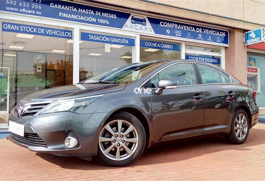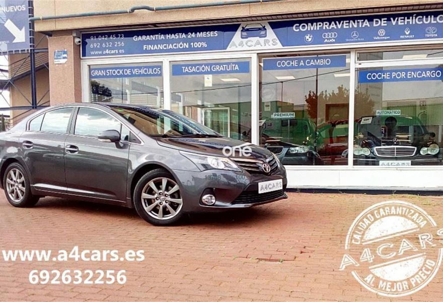TOYOTA Avensis, Diesel, año 2013, 63807 kilómetros, color Gris / Plata metalizado, precio 11690€. A4CARS.ES/(REPORTAJE COMPLETO EN A4CARS.ES) *COMPRAMOS SU COCHE* P.V.P Garantía comercial de hasta 24 meses a consultar.***IVA DEDUCIBLE***Kms certificados.Precio sujeto a financiación***FINANCIACIÓN 221€/MES***Precio al contado 12690. Revisiones al día.Equipado con: cadena de distribución,elevalunas eléctricos, retrovisores eléctricos plegables, ordenador de abordo,volante multifunción, control/limitador de velocidad,manos libres,sensor de luz/lluvia,preinstalación para navegador,cámara trasera, clima bizona,apoyabrazos del/trasero,regulación lumbar eléctrica,radioCDmp3/aux/USB,Isofix,luces antiniebla,luz diurna y llantas de 17 pulgadas. Precio reflejado es un precio base con impuestos incluidos , consultar con su comercial precios de servicios añadidos. Este anuncio no es vinculante, se muestra a nivel informativo y no contractual. A4Cars.