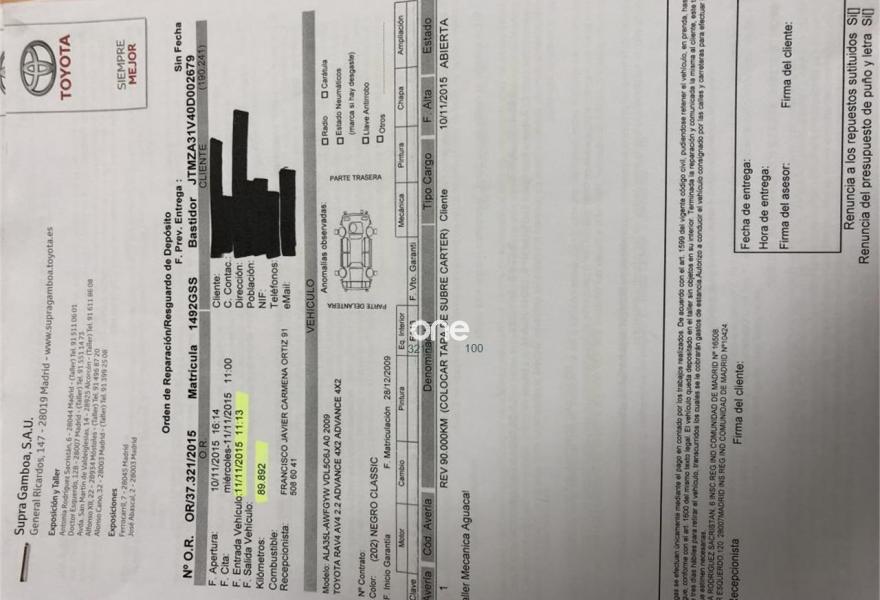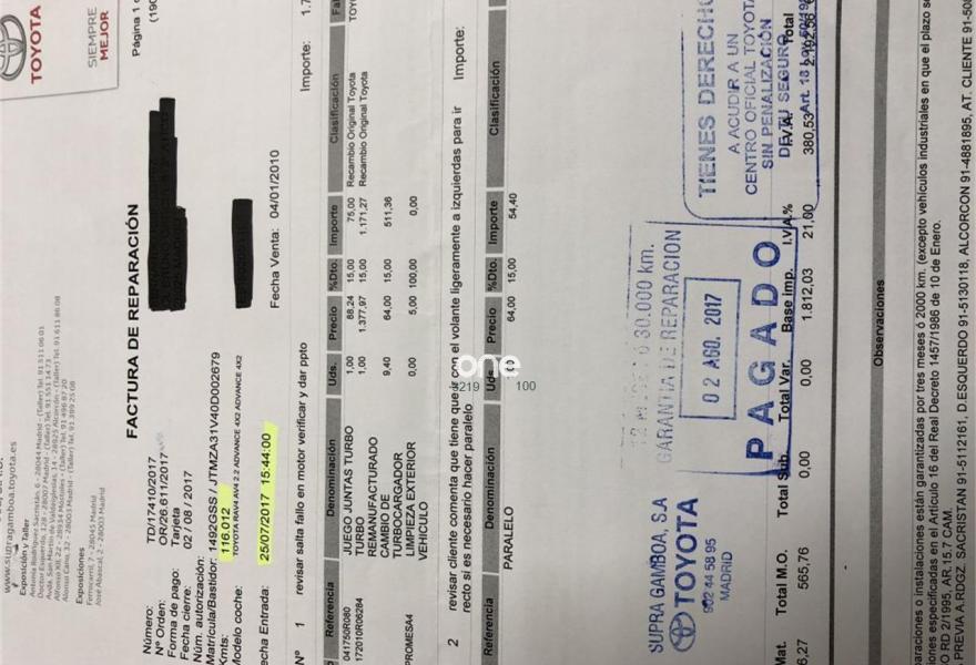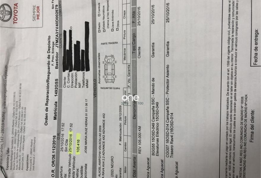 TOYOTA Rav4, Diesel, año 2010, 124456 kilómetros, color Negro (Negro (sólido)) metalizado, precio 11900€. Un UNICO Propietario.