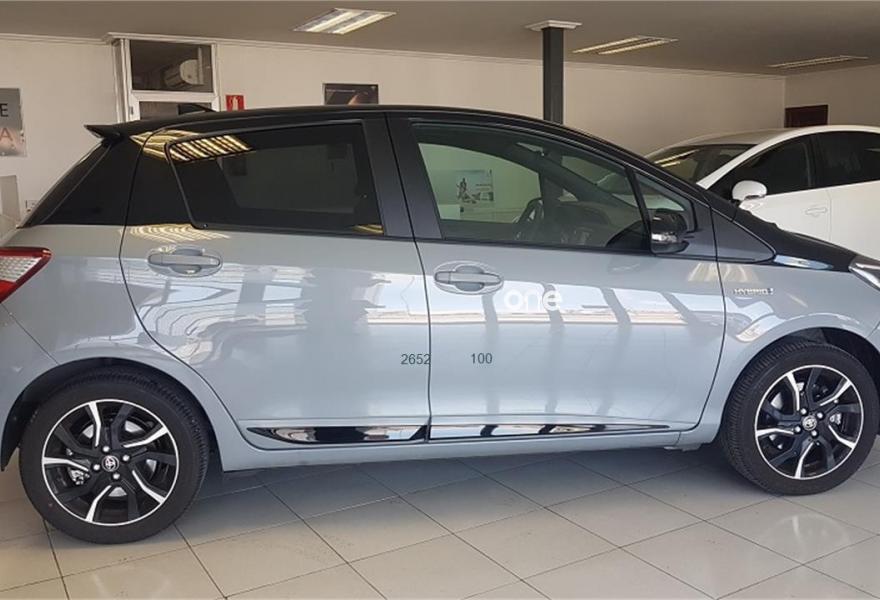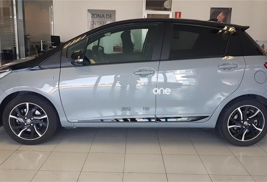TOYOTA Yaris, Eléctrico / Híbrido, año 2018, 4500 kilómetros, color Gris / Plata (negro) metalizado, precio 14900€. Sistema de navegación GO,Tapiceria Feel,Bi-tono Gris Manhattan / Techo frac. Vehículo matriculado a nombre de nuestro concesionario Toyota Hacha Motor.