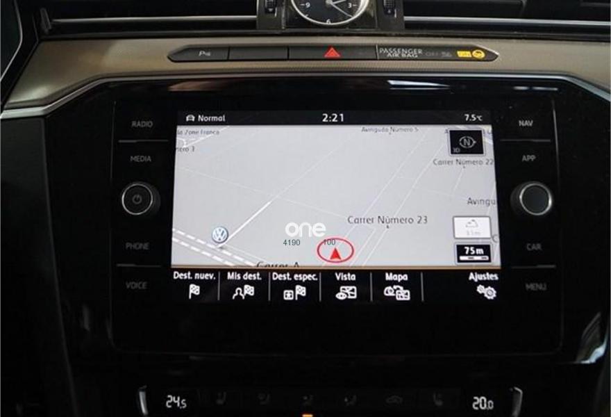 Head-Up Display. Cuadro de instrumentos digital configurable en forma de pantalla de cristal extensible delante del parabrisas con representaciones interactivas. Si no se utiliza, la pantalla se retrae nuevamente en el salpicadero y la abertura se cierra al ras para protegerla. A los ojos del conductor los datos proyectados parecen encontrarse a dos metros delante del Passat. La pantalla de visualización frontal se activa mediante un elemento de control individual situado junto al interruptor giratorio de 555 €