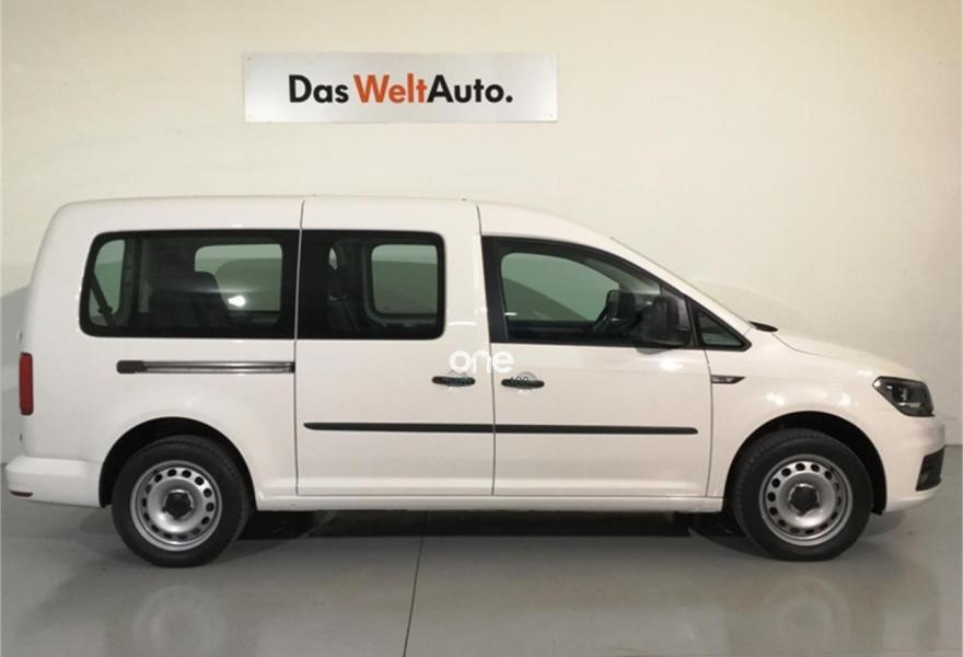 VOLKSWAGEN Caddy, Diesel, año 2017, 21905 kilómetros, color Blanco metalizado, precio 18900€. ParkPilot en la zona trasera,Tapizado robusto de asientos, diseño "Runner" en cabina; cuero sintético, diseño "Marathon" en habitáculo,App-Connect, Volkswagen Media Control e interfaz para teléfono móvil "Comfort" en combinación con Car-Net,Lunas laterales delanteras en cristal calorífugo, lunas laterales traseras y luneta trasera oscurecidas, capacidad de absorción luz hasta el 74%. Volkswagen Caddy Maxi Trendline 2.0TDI 102cv 7 plazas