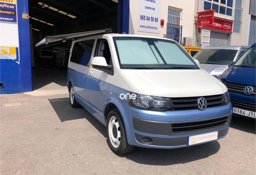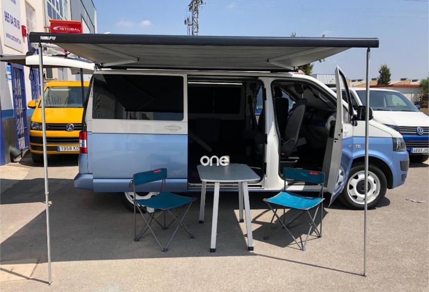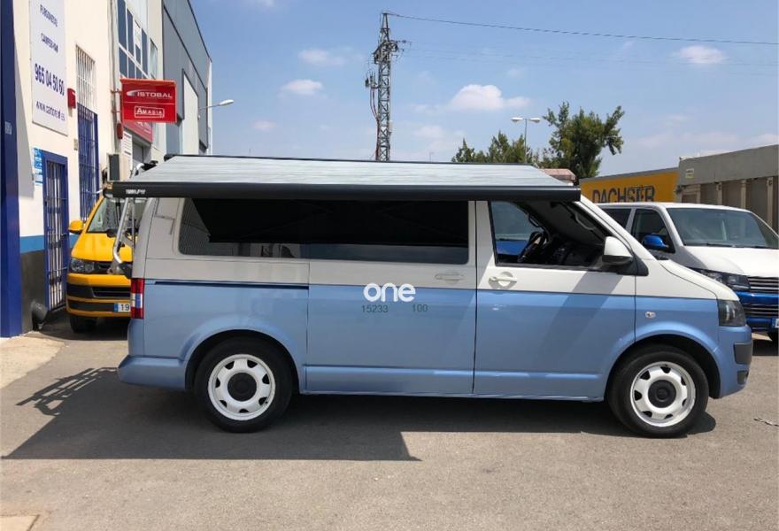 VOLKSWAGEN California, Diesel, año 2012, 175000 kilómetros, color Azul metalizado, precio 26900€. Radio Navegador RNS 510 (8 altavoces),Teléfono, preparación manos-libres,Volante multifunción en cuero con control de radio, Tempomat (incluido) y teléfono,Conector USB,Manos libres, pre-instalación Bluetooth,Sensor de lluvia y espejo interior antideslumbramiento,Sensor de luz y lluvia con coming / leaving home,Toldo lateral extensible con carcasa en negro,Volante multifunción en cuero con control de radio y Tempomat (incluido),Cristales oscurecidos (Privacy) en zona pasajeros y lunas antitérmicas verdes en cabina,Pintura metalizada,Sensor de parking trasero por ultrasonidos. Vehículo base VOLKSWAGEN T5 TRANSPORTER KOMBI Bi-TDI 180 CV, camperización estilo CALIFORNIA BEACH