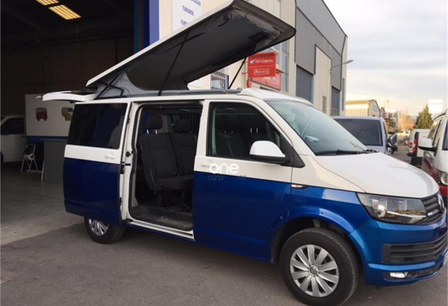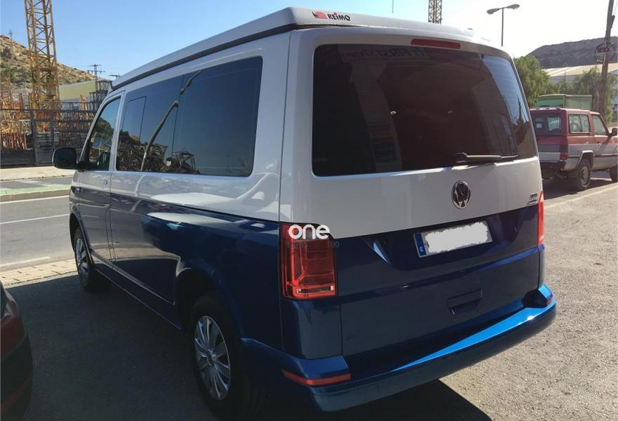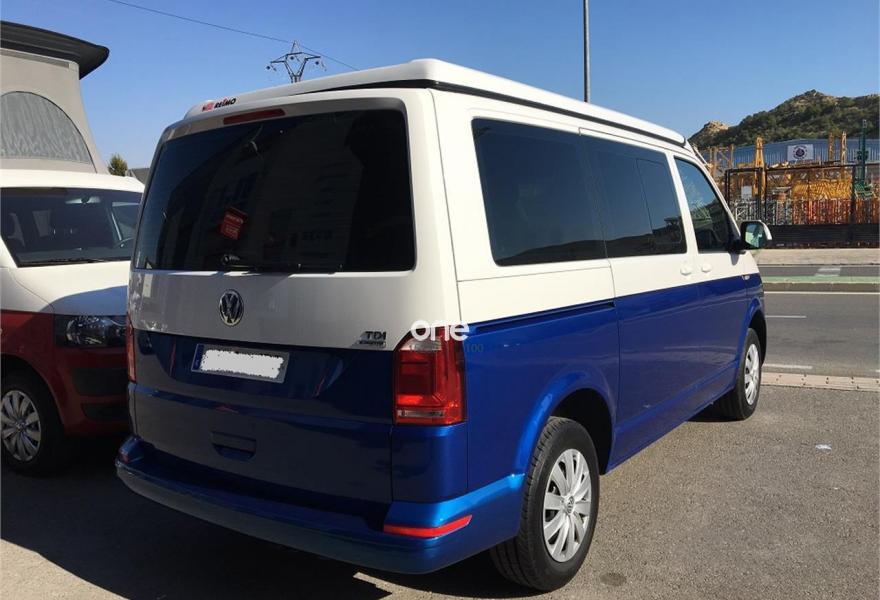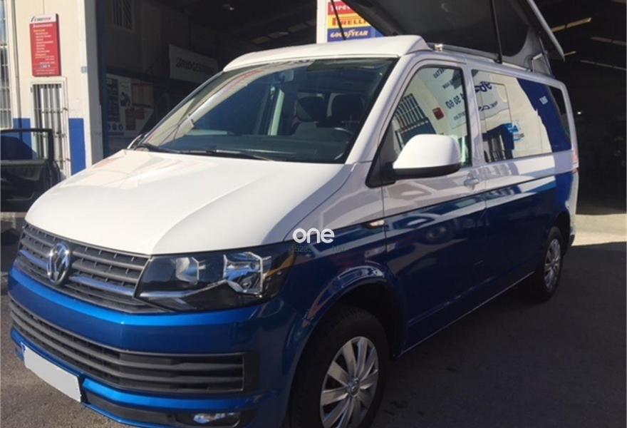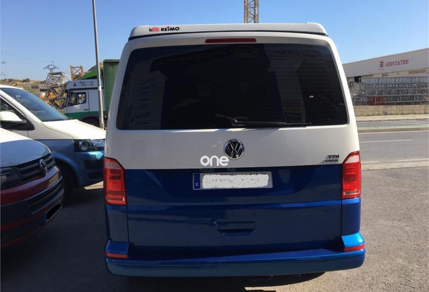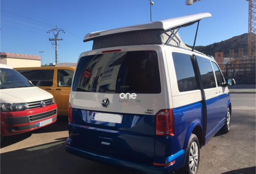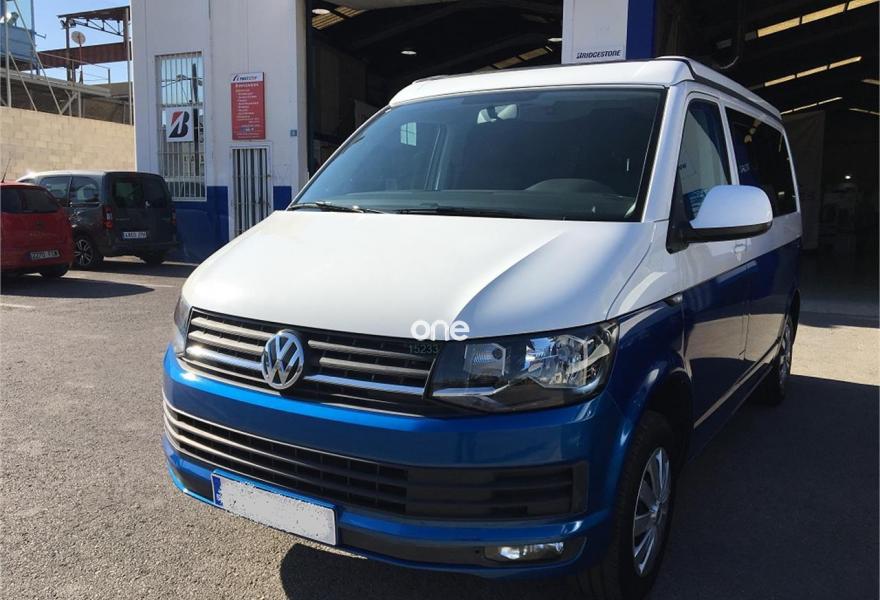 VOLKSWAGEN California, Diesel, año 2017, 17000 kilómetros, color Azul metalizado, precio 37600€. App-Connect,Ajuste en altura para asientos delanteros,2 USB y AUX-IN,Conexión Multimedia (USB),Receptor de radio digital (DAB+),Asiento individual adicional (5plazas),2 llaves plegables con control remoto, 1 llave rígida,Banco de tres plazas,Cristales tintados en zona de pasajeros,Espejos retrovisores exteriores y manillas de las puertas en color carrocería,Pintura bicolor,Pintura Bicolor,Pintura especial,Pintura metalizada,Pintura metalizada bicolor,Botiquín y triángulo señalización. Vehículo base VOLKSWAGEN T6 CARAVELLE 2.0 TDI, camperización estilo CALIFORNIA BEACH
