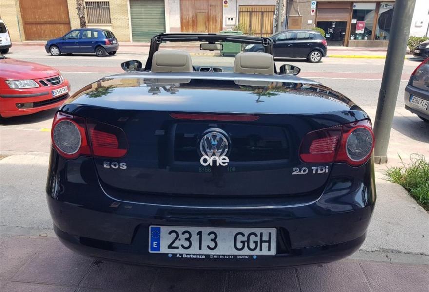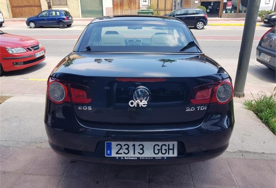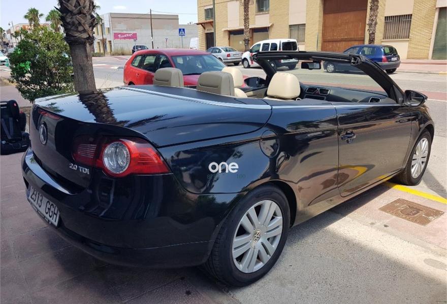 VOLKSWAGEN Eos, Diesel, año 2008, 170000 kilómetros, color Negro metalizado, precio 8500€. Cuero Vienna Beige Seda - Moqueta Beige Seda / Asientos deportivos,Radio CD RCD 510 con sonido Dynaudio y cargador de 6 CDs,Cajones bajo asientos delanteros,Paquete Chrome & Style,Volante multifunción en cuero,Llantas de aleación 7x16 Bahrain con neumáticos 215/55 R16,Negro Profundo (efecto perla),Anclajes ISOFIX para asiento del acompañante,Asistente para arranque en pendientes. EOS 2.0 TDI 140CV: asientos deportivos en cuero , faros xenon y sensor luces , clima bizona, bluetooch , volante deportivo en cuero multifuncion, sensor parking, control velocidad, asientos calefactables, ordenador abordo, 2 llaves, espejos plegables electricamente, libro mantenimiento, "" MUY BUEN ESTADO "" SE ENTREGA CON DISTRIBUCION HECHA "" GARANTIA Y CAMBIO DE NOMBRE INCLUIDOS EN EL PRECIO "".