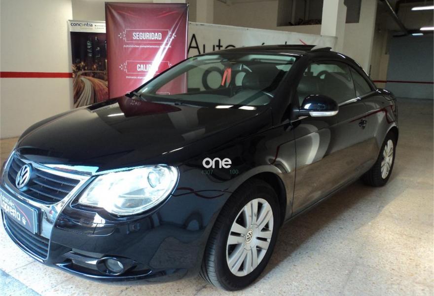 VOLKSWAGEN Eos, Gasolina, año 2007, 127000 kilómetros, color Negro metalizado, precio 8450€. Cuero Vienna Negro Titanio,Navegador RNS MFD2-DVD Sonido Dynaudio,Lavafaros escamoteable,Volante multifunción en cuero. cierre con mando y alarma,llantas de aluminio,faros antiniebla,ordenador de abordo,tapiceria de cuero,asientos calefactables,sensor de luces y lluvia,espejos abatibles eléctricos,espejo exterior e interior fotosensible,sensor de aparcamiento trasero,navegador y control de iPod.Kilometros certificados.12 meses de garantía.Concertar cita telefónicamente.{[n]}AUTOMOVILES LAPRESTA C/TERMINILLO N74.