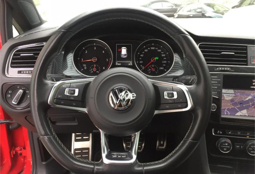 VOLKSWAGEN Golf, Diesel, año 2015, 67600 kilómetros, color Rojo , precio 22990€. Tapicería de tela/Alcántara para GTI/GTD,"Discover Pro" sistema de navegación,"Discover Pro" sistema de navegación,Conexión Media-In con cable adaptador para iPhone / iPod combinado con navegación Discover Pro,Sistema Bluetooth Premium,Asistente de mantenimiento de carril "Lane Assist" con asistente para luz de carretera"Dynamic Light Assist" y reconocimiento de señales de tráfico en combinación con navegación Discover Pro,Paquete GTD & Sound,Paquete GTI & GTD,Tela/Alcantara Negro Titanio / Asientos Deportivos,Sistema de cierre y encendido sin llave "Keyless Access",Suspensión adaptativa electrónicamente DCC,Techo panorámico,Pintura lisa Rojo Tornado,Rojo Tornado (especial),Asistente de velocidad de crucero "ACC" con Front Assist. *** VW GOLF VII GTD DSG ***