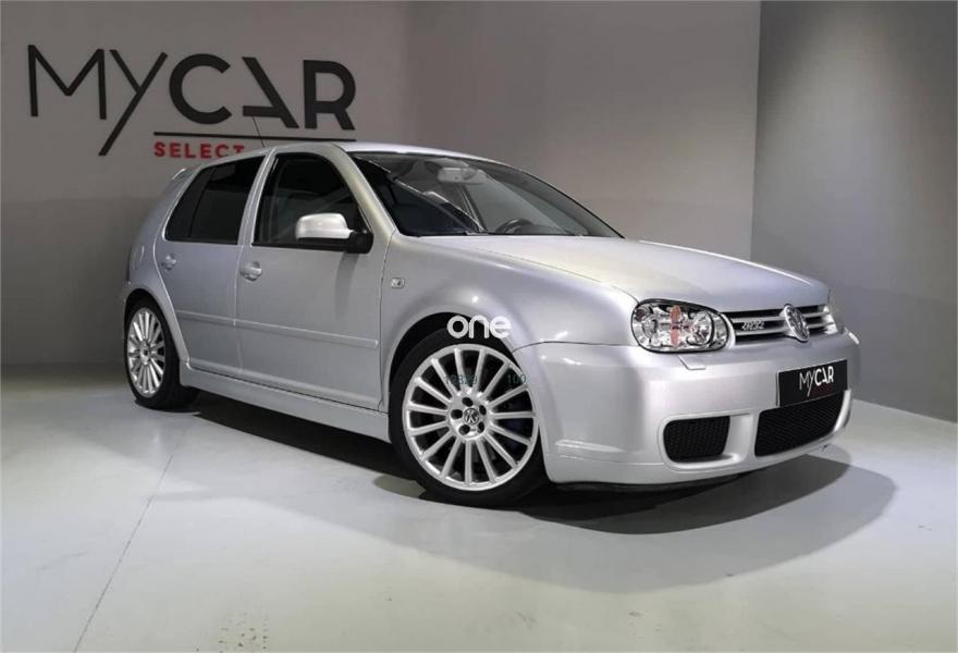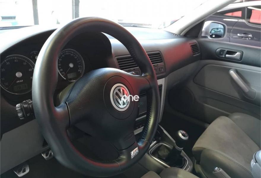 VOLKSWAGEN Golf, Gasolina, año 2003, 121800 kilómetros, color Gris / Plata metalizado, precio 16500€. Tapizado de alcántara gris,Cargador 6 CD's en maletero,Preinstalación telf para red GSM,Tempomat,Pintura metalizada. VW GOLF R32 5 PUERTAS. Coche de coleccionista, MUY POCAS UNIDADES en España. Todo el mantenimiento hecho al día, Libro de mantenimiento, Dos llaves. Garantía de 1 año y cambio de nombre incluidos en el precio.