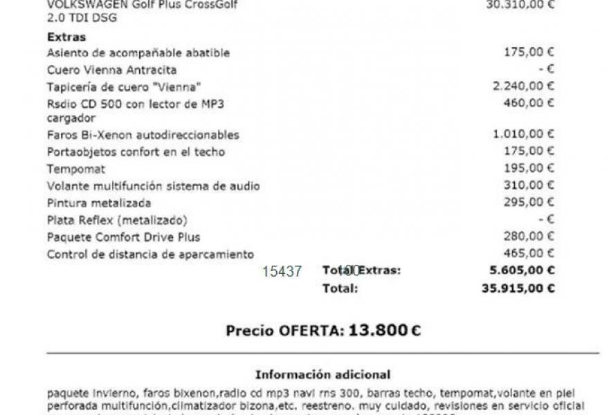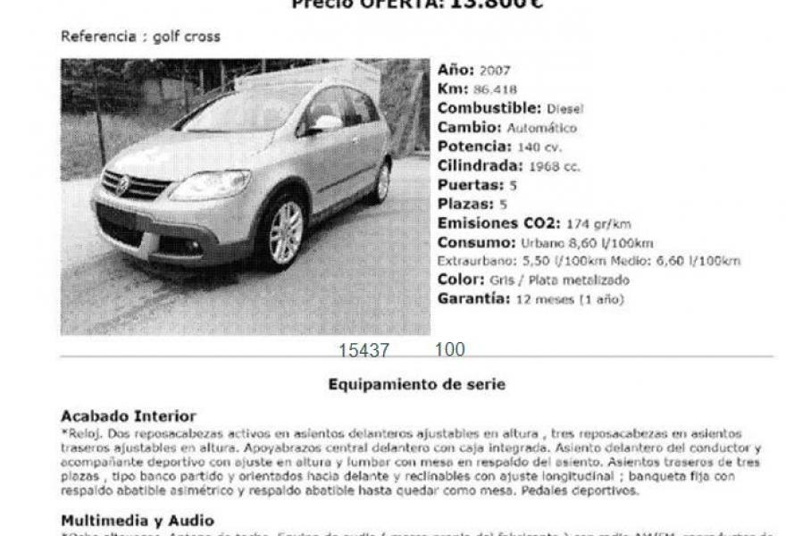 VOLKSWAGEN Golf Plus, Diesel, año 2007, 86418 kilómetros, color Gris / Plata metalizado, precio 13800€. Asiento de acompañable abatible,Cuero Vienna Antracita,Tapicería de cuero "Vienna",Rsdio CD 500 con lector de MP3 cargador,Faros Bi-Xenon autodireccionables,Portaobjetos confort en el techo,Tempomat,Volante multifunción sistema de audio,Pintura metalizada,Plata Reflex (metalizado),Paquete Comfort Drive Plus,Control de distancia de aparcamiento. paquete invierno, faros bixenon,radio cd mp3 navi rns 300, barras techo, tempomat,volante en piel perforada multifunción,climatizador bizona,etc. reestreno. muy cuidado, revisiones en servicio oficial vw.