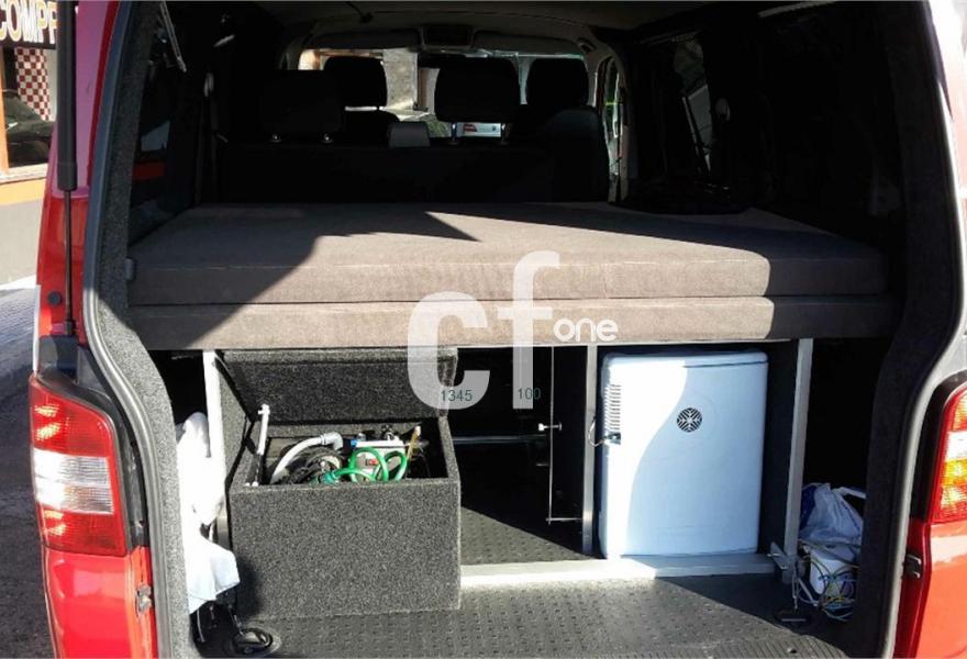 Asientos Delanteros Giratorios, 5 Plazas Homologadas, Tapicería Tela / Cuero Negro, Aire Acondicionado, Lunas Traseras Tintadas, Cortinas en todas las Ventanas, Enchufes a 220 V, Luces de lectura traseras, Doble Batería, Cuadro Eléctrico con Control de Carga para la segunda Batería, Nevera, Ducha con función de auto - cargado, Cama Doble, Cajoneras, Mesa desmontable, Toma Trifasica Para Camping, Aislamiento Térmico y Sonoro, Estructura de Aluminio Desmontable para la Cama............