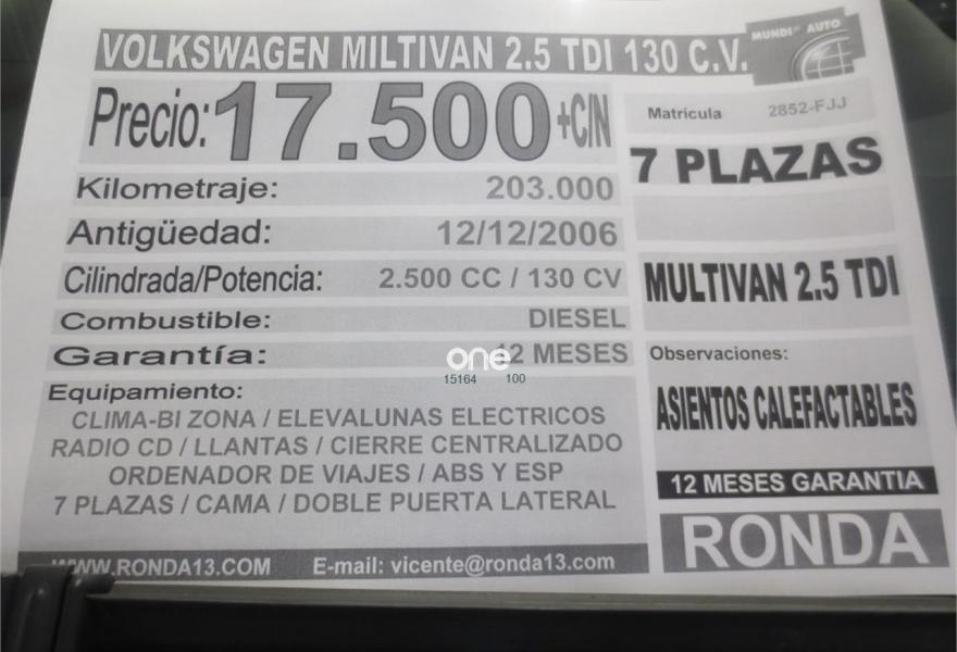 VOLKSWAGEN Multivan, Diesel, año 2007, 203000 kilómetros, color Gris / Plata metalizado, precio 16500€. 2 asientos individuales en 2ª fila,Asientos en cabina giratorios. VW MULTIVAN 2.5 130CV