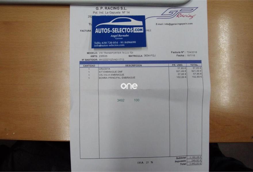 VOLKSWAGEN Multivan, Diesel, año 2000, 230000 kilómetros, color Blanco (KIT EMBRAGUE NUEVO) metalizado, precio 9999€. VW Multivan 6 Plazas. Motor 2.5 TDi 102 CV. En perfecto estado. Usada para viajar. Kit embrague Bimasa completo a estrenar con factura de 1450€. Kit de Distribucion completo mas bomba de agua; Bateria auxiliar de alto rendimiento; Tubo de escape; Amortiguadores traseros Monroe; Pastillas y discos delanteros; Aceite; Filtros; Neumaticos; Todo cambiado. Cama. Mesa. Nevera. Baterias auxiliares. Transformador de 12 a 220V. Aire acondicionado; Calefaccion en parte trasera y estatica programable. Asientos calefactables. ABS. Airbags. Gancho Remolque. Lunas tintadas. Aislantes ventanas. Equipo sonido CD Sony MP3-Usb. Llantas de Aleacion. Pintura perlada blanca original VW. Bajos en antigravilla negra para proteccion. Paragolpes, espejos y manillas pintados en negro. Interior cuidado. Año fabricacion 96. 1ªMatriculacion Española 2006. Garantia Europea 12 meses. A toda prueba. autos-selCalidad-Precio. .