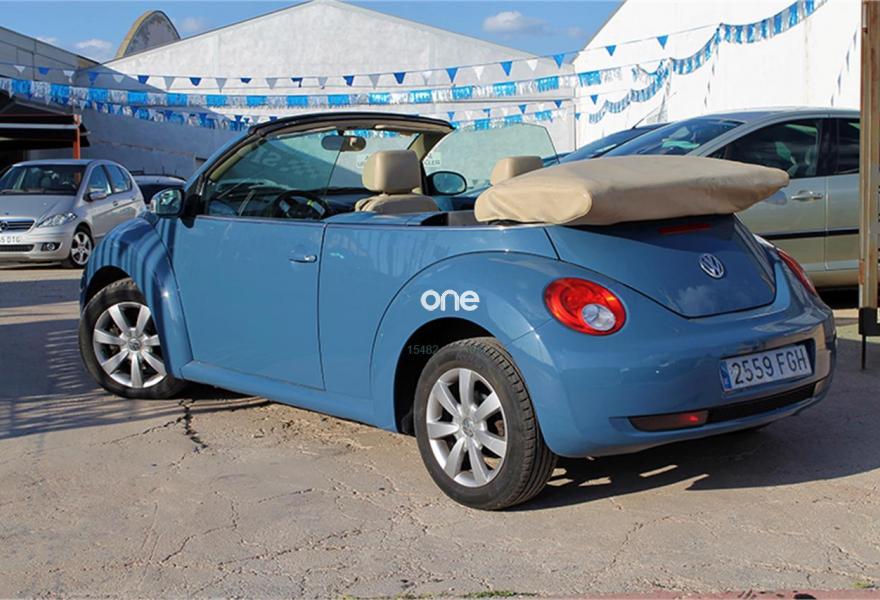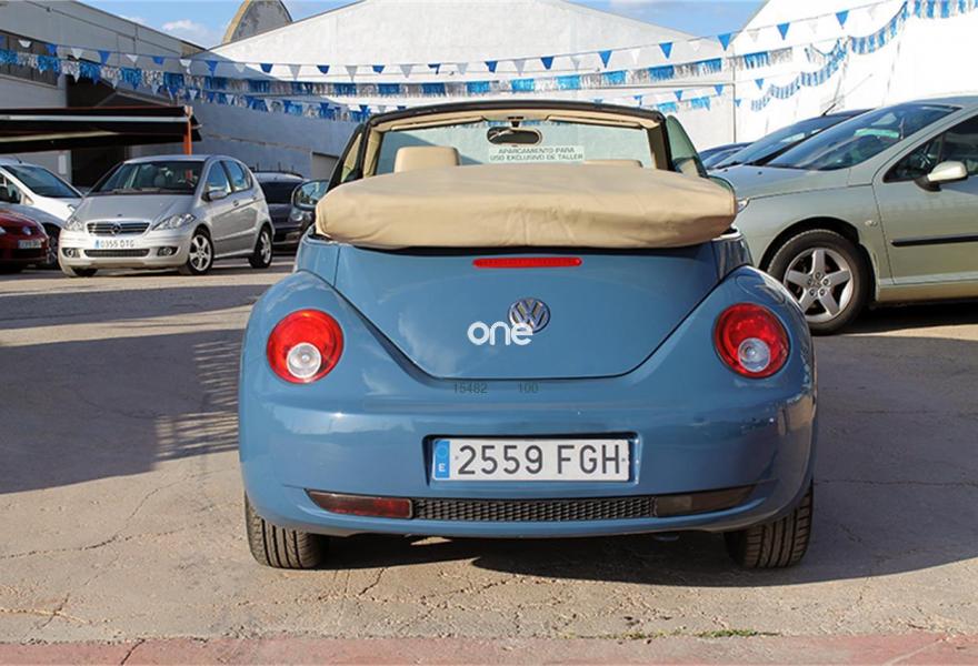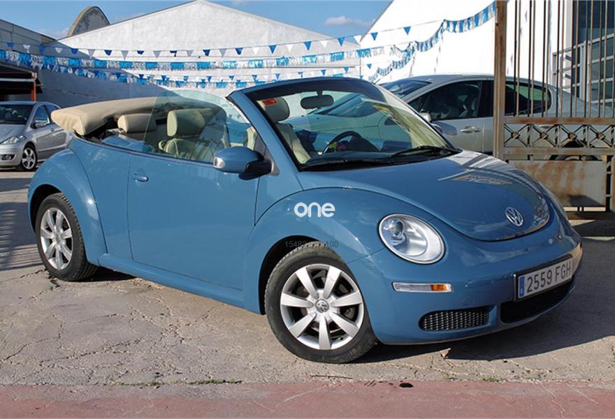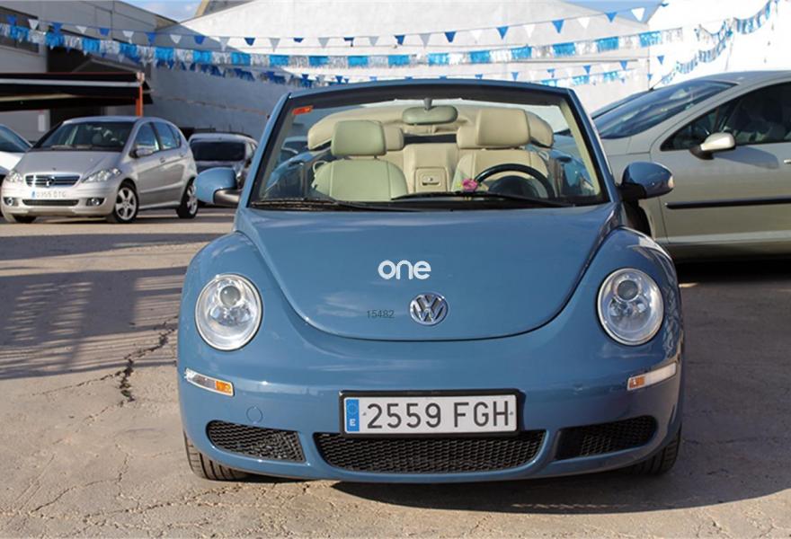 VOLKSWAGEN New Beetle, Diesel, año 2007, 159000 kilómetros, color Azul metalizado, precio 8600€. Cuero Sport Beige,Interior en cuero,Faros antiniebla,Azul Sombra (metalizado),Pintura metalizada. Ocasión!, VW Beetle Cabrio 1.9TDI 105cv, revisiones e ITV al día. Equipado con: faros antiniebla, llantas de aleación de 16 pulgadas, capota de tela, retrovisores regulación eléctrica calefactables, volante de cuero, ESP, tapicería de cuero, asientos calefactables, radio CD/USB/AUX, aire acondicionado... siempre en garaje, 80% de los kilómetros en carretera.