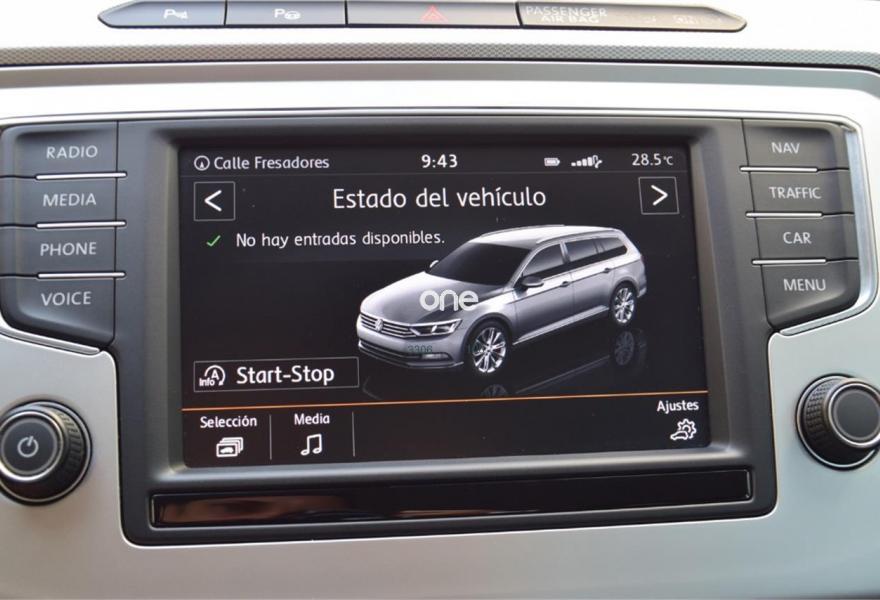 VOLKSWAGEN Passat, Diesel, año 2015, 75300 kilómetros, color Gris / Plata (Plata Tungsteno) metalizado, precio 19900€. Plata Tungsteno (metalizado),Tela Weave Negro Titanio,Llantas de aleación "Nivelles" de 17" con neumáticos 215/55 R17 con interior llanta en negro,Faros LED Basis,Cristales tintados,Pintura metalizada. *Llévatelo por 18.900€ financiado, consultar las condiciones de financiación. Vehículo Nacional de un único propietario. Última revisión en Concesionario Oficial Volkswagen (F.Tome S.A.) el 21/11/2017 a los 58.697Kms. En el precio se incluye: IVA (Deducible), Transferencia y Garantía de un año. La Certificación de Kilómetros y que no ha sufrido golpes estructurales, queda reflejado en el Contrato. Todos nuestros vehículos disponen de un informe independiente y objetivo. Abierto 365 días - Financiación Desde 251€/Mes - Web: autosportmor// Ref. 3760169