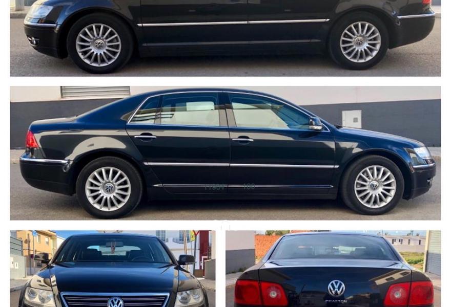 VOLKSWAGEN Phaeton, Diesel, año 2007, 216000 kilómetros, color Negro metalizado, precio 9900€. Volkswagen Phaeton 3.0 V6 TDI 224cv 4motion, año 2007, con 216.000km demostrables con todo el libro de revisiones sellado en servicio oficial, NACIONAL, todos los extras como: climatizador bizona, asientos en cuero negro perforado electricos y calefactables, inserciones en madera, suspensión neumática regulable, sistema de navegación GPS, cargador de cds, sensores de aparcamiento, luz y lluvia, volante multifuncion, control de velocidad, bola de remolque desmontable. Coche en perfecto estado tanto de exterior como de interior, se admite cualquier tipo de prueba en su taller de confianza, mejor ver y probar. ((aceptamos su coche como parte de pago y le ofrecemos la posibilidad de financiar hasta el 100% de la compra)). Un saludo y gracias..