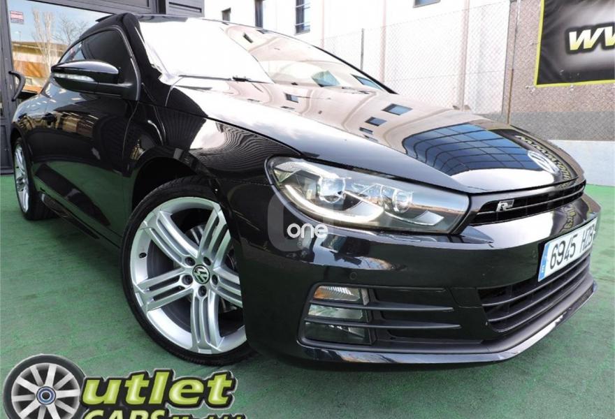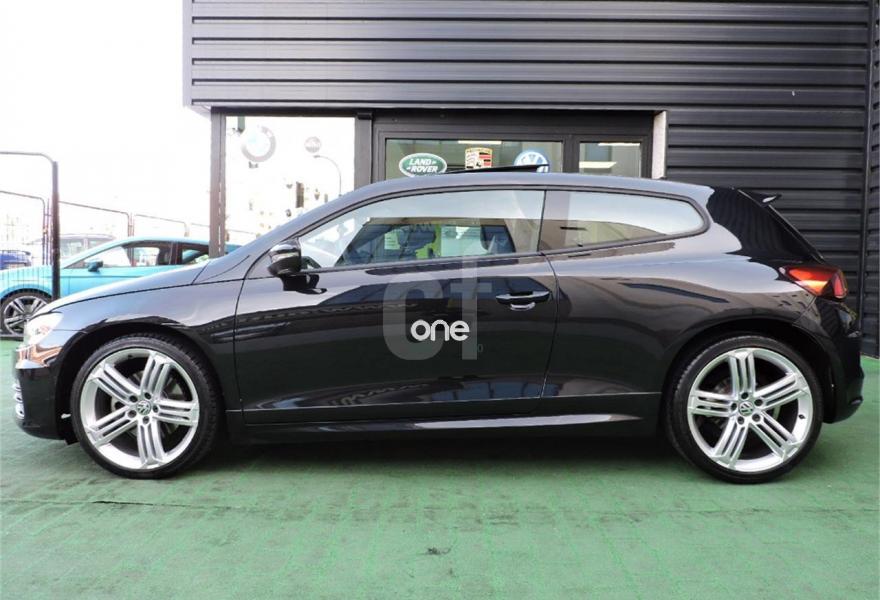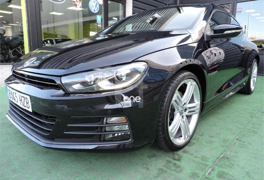VOLKSWAGEN Scirocco, Diesel, año 2014, 72000 kilómetros, color Negro metalizado, precio 19990€. Negro Profundo (efecto perla),Pintura efecto perla,Tela con microfibras "Race" R-Line Negro,Techo practicable panorámico,Detector de fatiga,Llantas de aleación "Talladega" 8J x 19" con neumáticos 235/35,Paquete R-Line Interior para DSG. VOLKSWAGEN SCIROCCO 2.0 TDI 185CV RLine BMT 3p.
