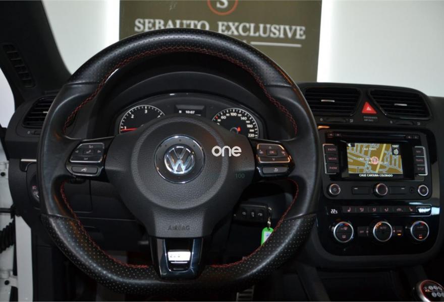VOLKSWAGEN Scirocco, Diesel, año 2013, 126000 kilómetros, color Blanco metalizado, precio 19600€. Radio navegador RNS 315 con pantalla táctil,Techo practicable panorámico,Cristales laterales y luneta trasera tintados. Versión GTS, llantas de aleación de 18 pulgadas modelo «Thunder», climatizador bizona, asientos deportivos calefactables, faros bi-xenón con luz de curva y luz diurna, radio RCD con pantalla táctil, cargador de 6 Cd`s y conector multimedia, «Media-In», sensor de lluvia, retrovisor interior electrocrómico y retrovisores eléctricos, térmicos y abatibles eléctricamente con función «Parking», techo panorámico eléctrico y guantera refrigerada, volante de cuero multifunción, sensores de aparcamiento.