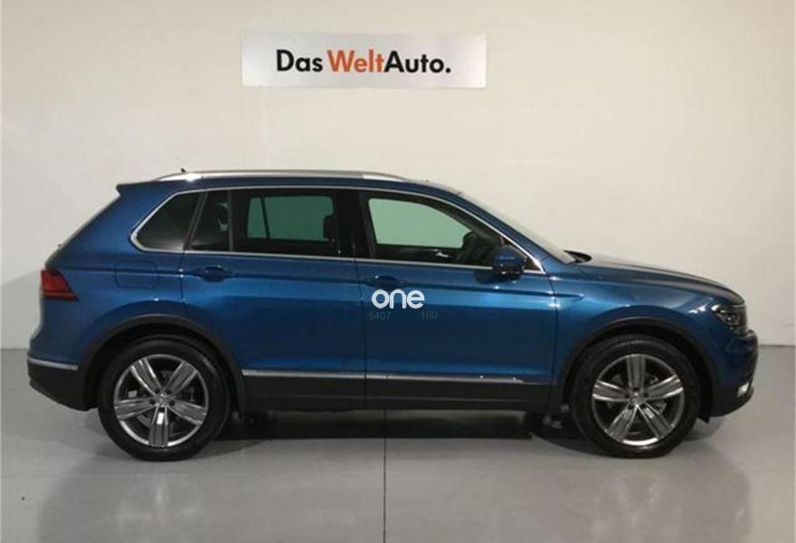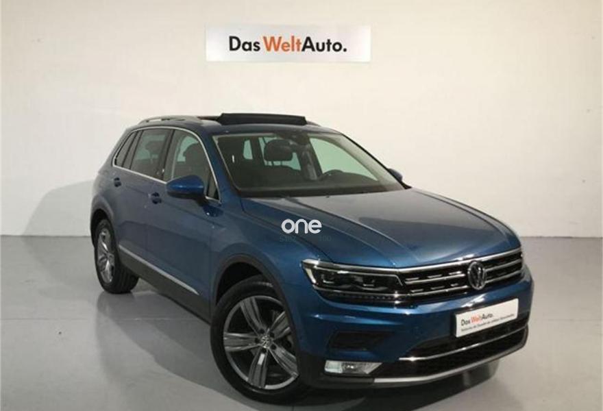VOLKSWAGEN Tiguan, Diesel, año 2017, 11023 kilómetros, color Azul (Azul Caribe) metalizado, precio 33450€. Ref. 168251{[n]}{[n]}Precio: 33.450€{[n]}{[n]}Precio nuevo: 40.755€{[n]}{[n]}Pintura:{[n]}Azul Caribe{[n]}Pintura metalizada y efecto perla 546 €{[n]}Tapicería:{[n]}antracita/negro/antracita/gris{[n]}Equipamiento Opcional Incluido:{[n]}Llantas aleación 19´´ "Victoria Falls". 4 Llantas de aleación 7J x 19 Neumáticos 235/50 R19 (con tecnología autosellante AirStop® Volkswagen). Tornillos antirrobo 670 €{[n]}Control por voz 208 €{[n]}Paquete invierno. Asientos delanteros calefactables. Eyectores limpiaparabrisas calefactables 301 €{[n]}Incluir cable USB gratuito de App-Connect para iPhone{[n]}Paquete Sport España{[n]}.