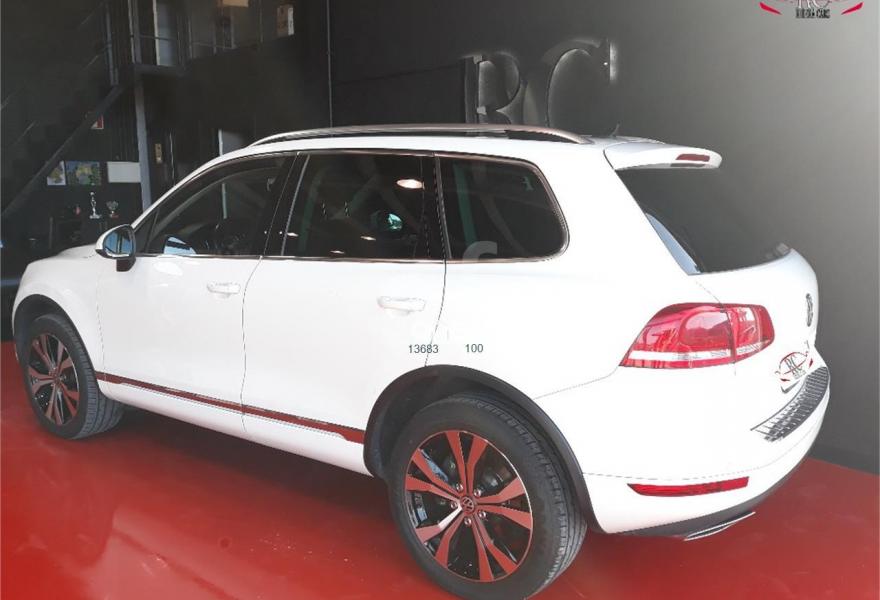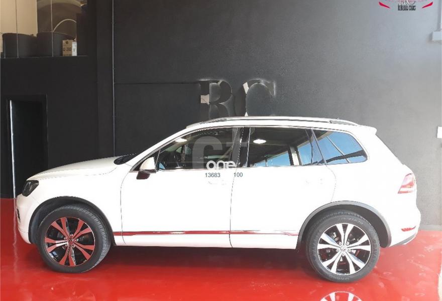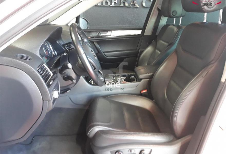 VOLKSWAGEN Touareg, Diesel, año 2011, 139000 kilómetros, color Blanco , precio 24990€. Paquete deportivo interior con cristales oscuros,Asientos con tapicería de cuero "Cricket",Control de distancia de aparcamiento delantero y trasero (con Area View),Control de presión de los neumáticos,Cuero Cricket Negro - Paquete Deportivo,Faros Bi-Xenon direccionales con luz día LED,Barras de techo longitudinales plateadas,Techo de cristal panorámico corredizo eléctrico,Climatronic de cuatro zonas,Blanco Puro (sólido),Llantas de aleación "Tarragona" de VW Exclusive 9Jx20 con neumáticos de carretera 275/45 R 20,Lunas traseras oscurecidas,Omisión de la denominación de motor en portón trasero,Omisión de la denominación de modelo y motor en portón trasero,Paquete deportivo interior. VOLKSWAGEN TOUAREG 3.0 TDI V6 BLUEMOTION 4MOTION TIPTRONIC 245CV en color exterior blanco y con el interior deportivo completamente en cuero negro.