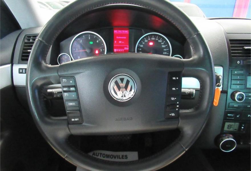 VOLKSWAGEN Touareg, Diesel, año 2007, 270000 kilómetros, color Negro metalizado, precio 9950€. Maravilloso Volkswagen Touareg 3.0TDI V6 +Motion Tiptronic todoterreno 4x4 de un solo dueño con libro de mantenimiento, kms. certificados en perfectas condiciones tanto interior como exterior, con asientos de piel y calefactables, faros de xenon, sensor de aparcamiento delantero y trasero, llantas de 18", cambio automático, tiptronic, regulador de velocidad, retrovisores eléctricos, plegables automáticamente, ITV hasta 2019, en perfectas condiciones, con la revisión reciente. Se acepta vehículo como parte de pago y posibilidad de financiación a su medida, garantía de 1 año opcional.