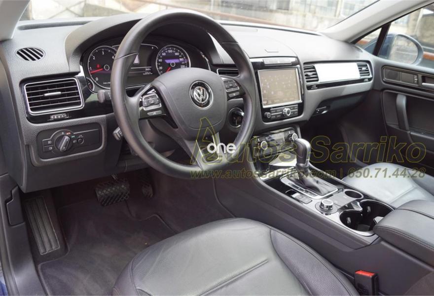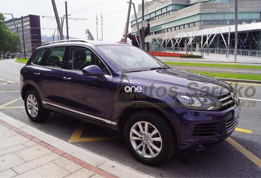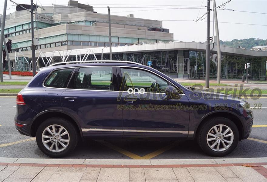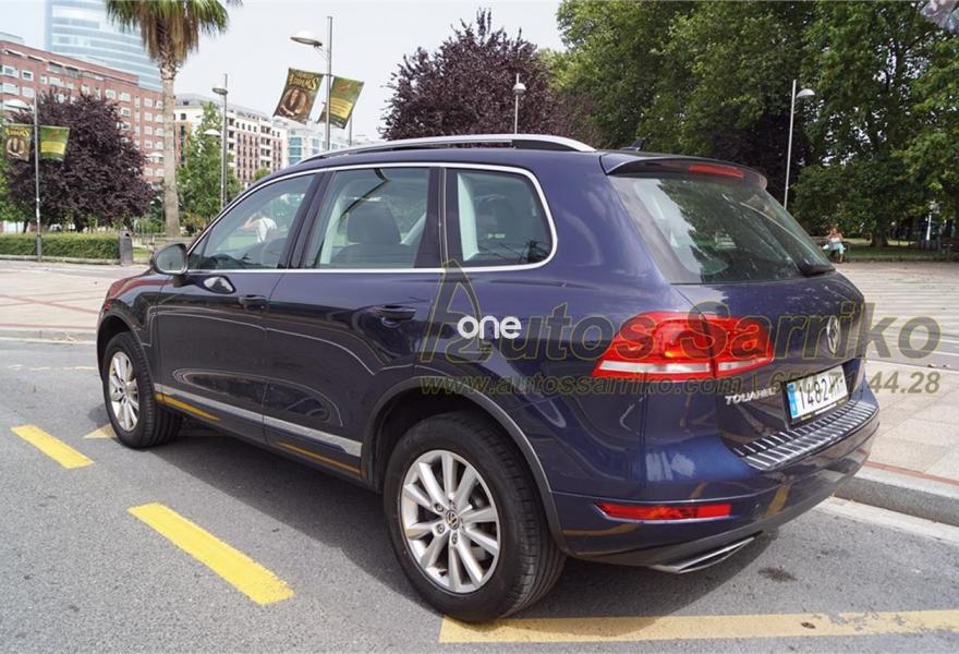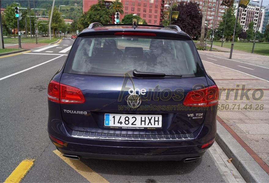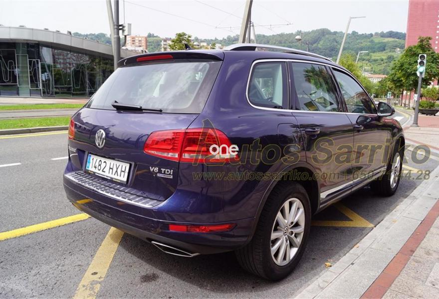 VOLKSWAGEN Touareg, Diesel, año 2014, 79000 kilómetros, color Azul metalizado, precio 29800€. Luces traseras LED,Barras de techo longitudinales plateadas,Techo de cristal panorámico corredizo eléctrico,Airbags laterales traseros,Paquete de radio navegación "RNS 850" con "Área View",Cortinilla parasol para las lunas laterales posteriores,Omisión de la denominación de modelo y motor en portón trasero,Paquete deportivo interior con cristales oscuros,Reconocimiento de señales de tráfico,Asientos comfort con tapicería de cuero "Vienna",Cable adaptador para iPhone5,Toma de corriente en el maletero de 230V,Control de presión de los neumáticos,Azul Noche (metalizado). S.U.V. Premium Nacional, con libro de mantenimiento oficial Volkswagen. Todas las revisiones efectuadas estrictamente en servicio Oficial, la última correspondiente a los 72.163 kilómetros.Se certifica kilometraje y que no ha sufrido golpe estructural.El precio de esta vehículo nuevo en concesionario, fue en su día de 67.359,99 euros.El precio incluye I.V.A . ( Deducible ) y 12 meses de garantía total AUTOS SARRIKO EXCELLENCE.Precio vinculado a financiación (Importe Mínimo a Financiar 15.000 euros. Precio a contado 30.800 euros ).Se financia el 100% de la operación a unas condiciones excelentes. Consúltenos sin compromiso.La documentación se efectúa en el día con un coste de 97 euros.Todos nuestros vehículos pasan por una exhaustiva revisión de 100 puntos.AUTOS SARRIKO, 30 años liderando el sector en Vizcaya..