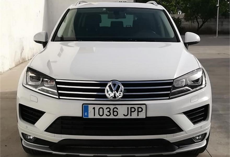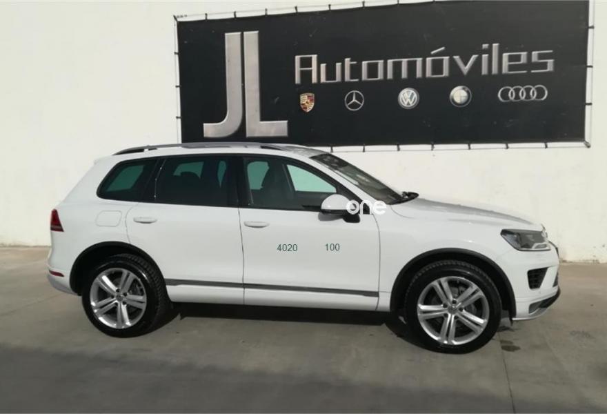 VOLKSWAGEN Touareg, Diesel, año 2016, 30000 kilómetros, color Blanco (CUERO NEGRO, LLANTAS DE 20, GPS, XENON) , precio 40995€. Asientos confort con tapiceria de cuero "Nappa",Preinstalación de teléfono "VW Universal Bluetooth Plus",Barras de techo longitudinales plateadas,Llantas de aleación "Masafi" 9Jx20 con neumáticos de carretera 275/45 R 20,Lunas traseras oscurecidas,Volante multifunción de cuero con levas,Control de distancia de aparcamiento delantero y trasero,Paquete de radio navegación "RNS 850" con "Área View". JL AUTOMOVILES