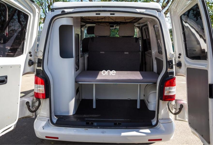 VOLKSWAGEN Transporter, Diesel, año 2010, 190959 kilómetros, color Blanco , precio 24500€. Furgoneta camperizada Volkswagen Transporter del año 2010 con cama en techo elevable, comedor enfrentado con asientos de cabina giratorios, cocina y asientos traseros convertibles en cama.