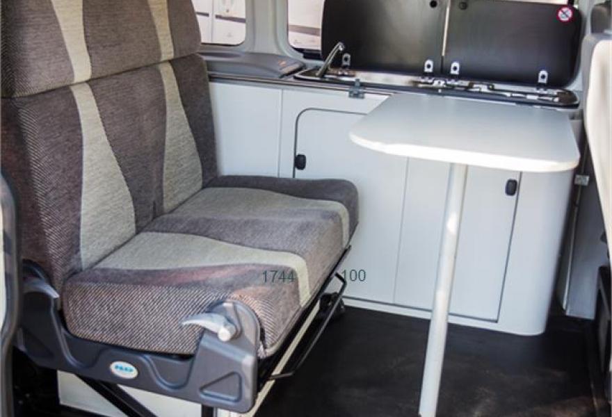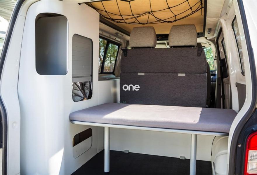 Cuatro plazas homologadas; Climatizador; Elevalunas eléctrico; Volante regulable; Radio CD integrado; Seis marchas; Asientos giratorios y abatibles; Portabicis de dos raíles; Calefacción Webasto; Retrovisores eléctricos y térmicos; Cierre centralizado; Lunas tintadas; Nevera 12V; Cocina dos fuegos; Tapacubos de plástico Volkswagen