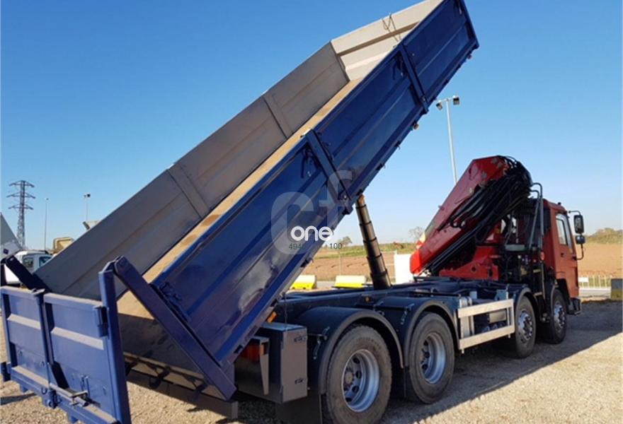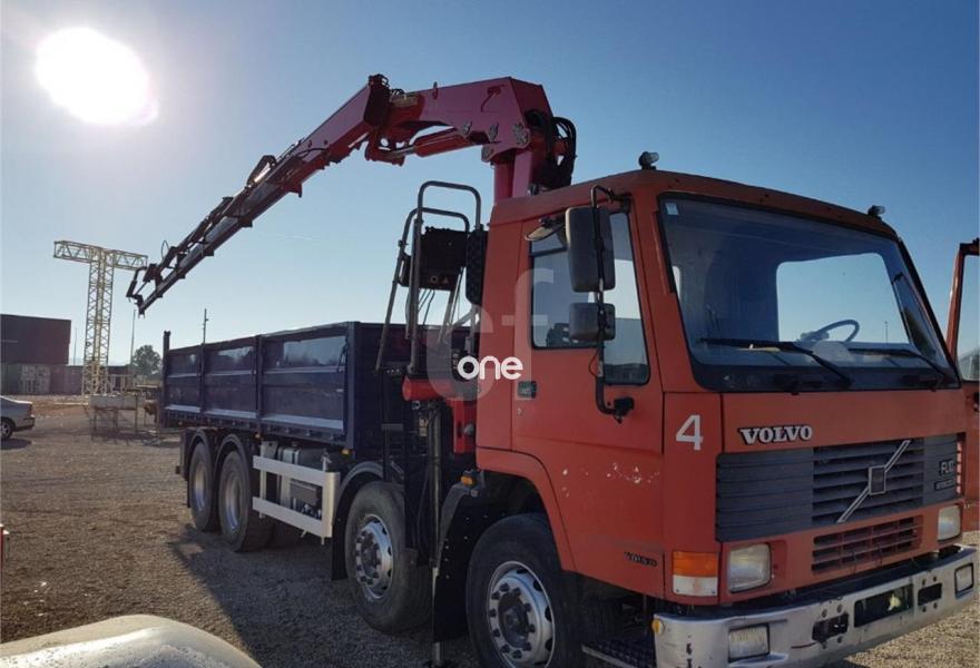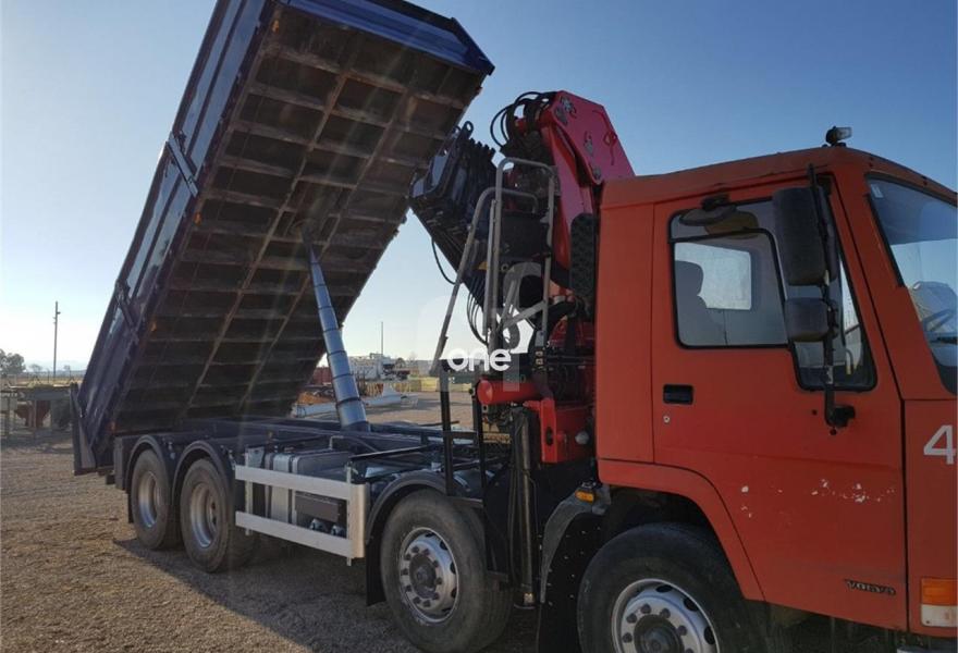VOLVO FL10, año 1996, 376316 kilómetros, precio 32500€. Grua HMF 2020 - Mando elevado con cable - Caja reforzada - Volquete - 376316 kms.